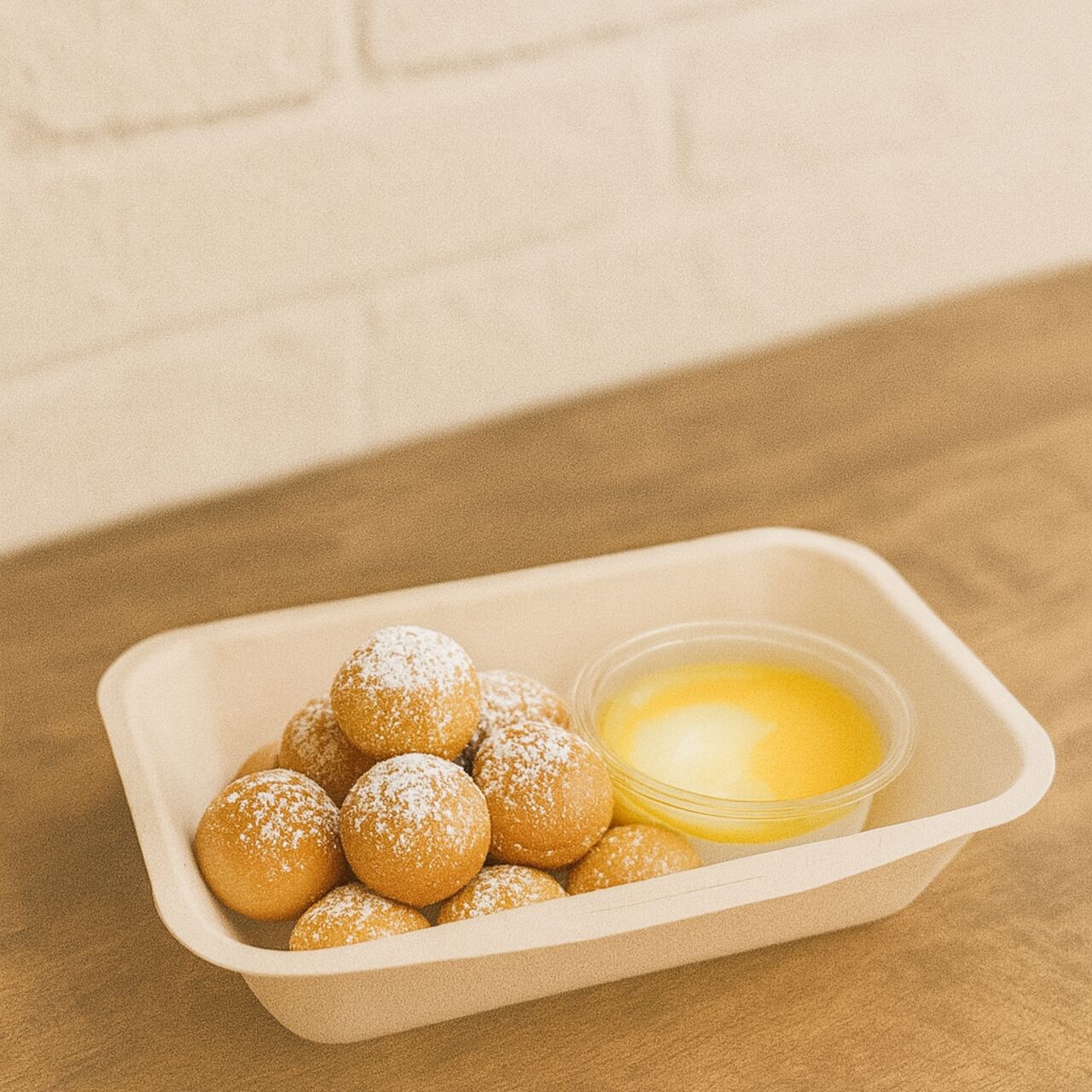 特製生クリーム&はちみつにディップして食べるオシャレベビーカステラです。