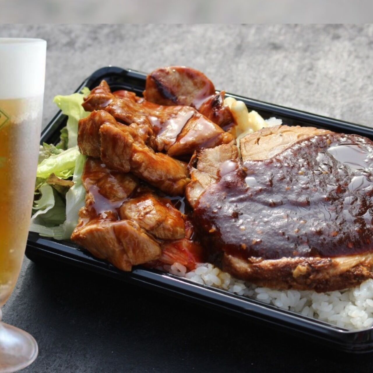 ホロホロ焼豚の生姜醤油と豚肩肉のステーキをふんだんに乗せたスペシャル丼