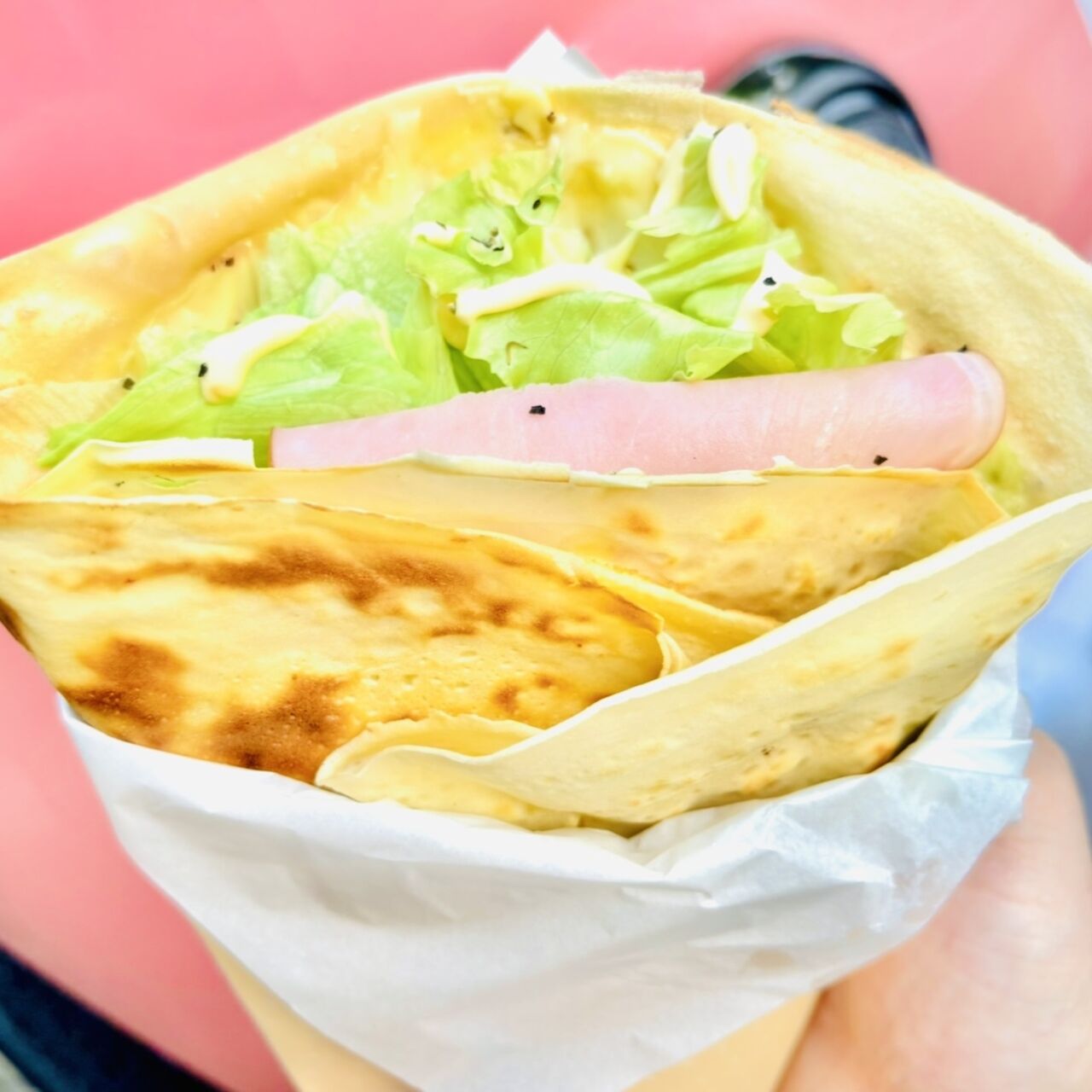 パリパリの焼き目を入れた生地にたっぷりレタスとツナとハムマヨを挟んだ惣菜人気商品です