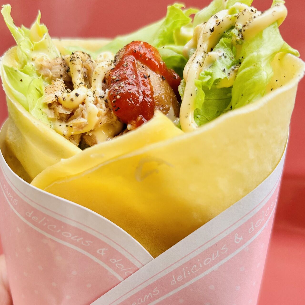 パリパリソーセージとたっぷりツナを入れた惣菜系メニューです。ガッツリ満足度100%です。