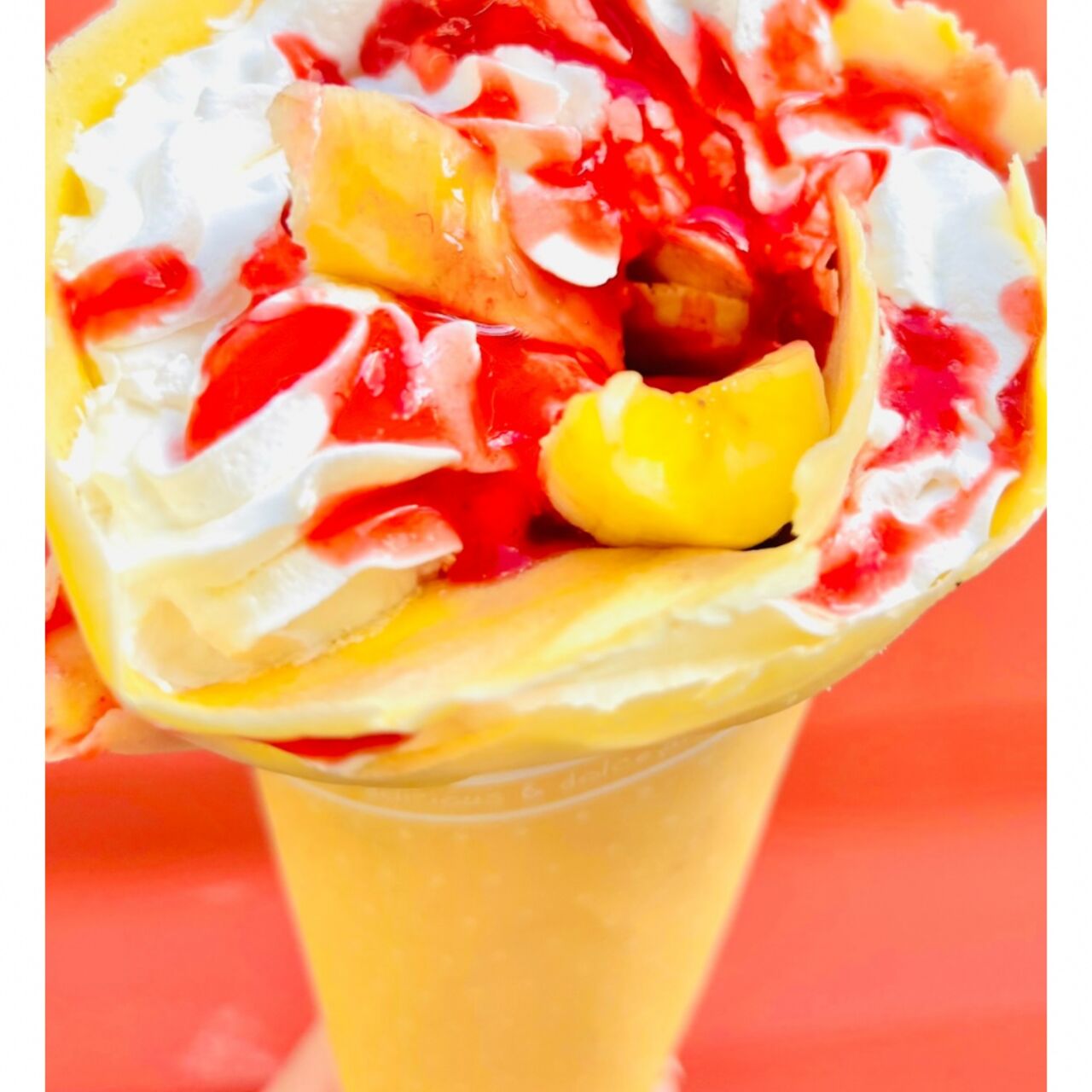 甘さとコクのあるエジプト産ストロベリーソースとバナナのコラボをお楽しみください