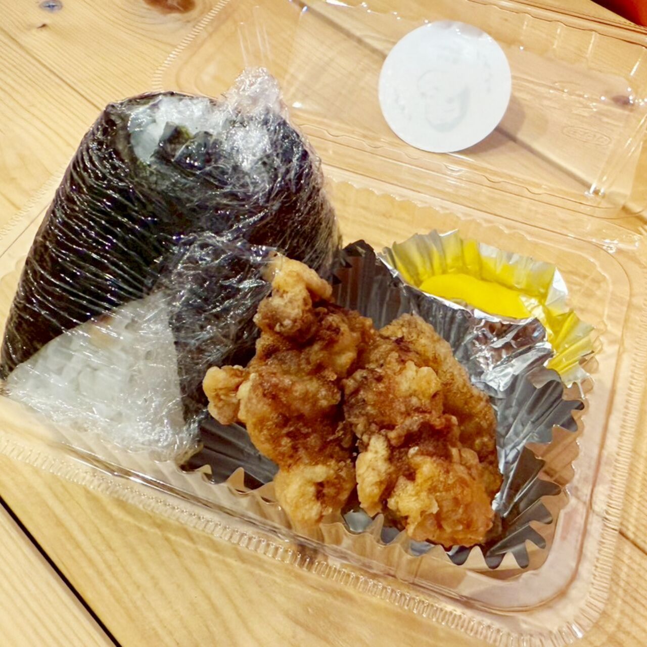 おにぎり1個と唐揚げ、沢庵のセット