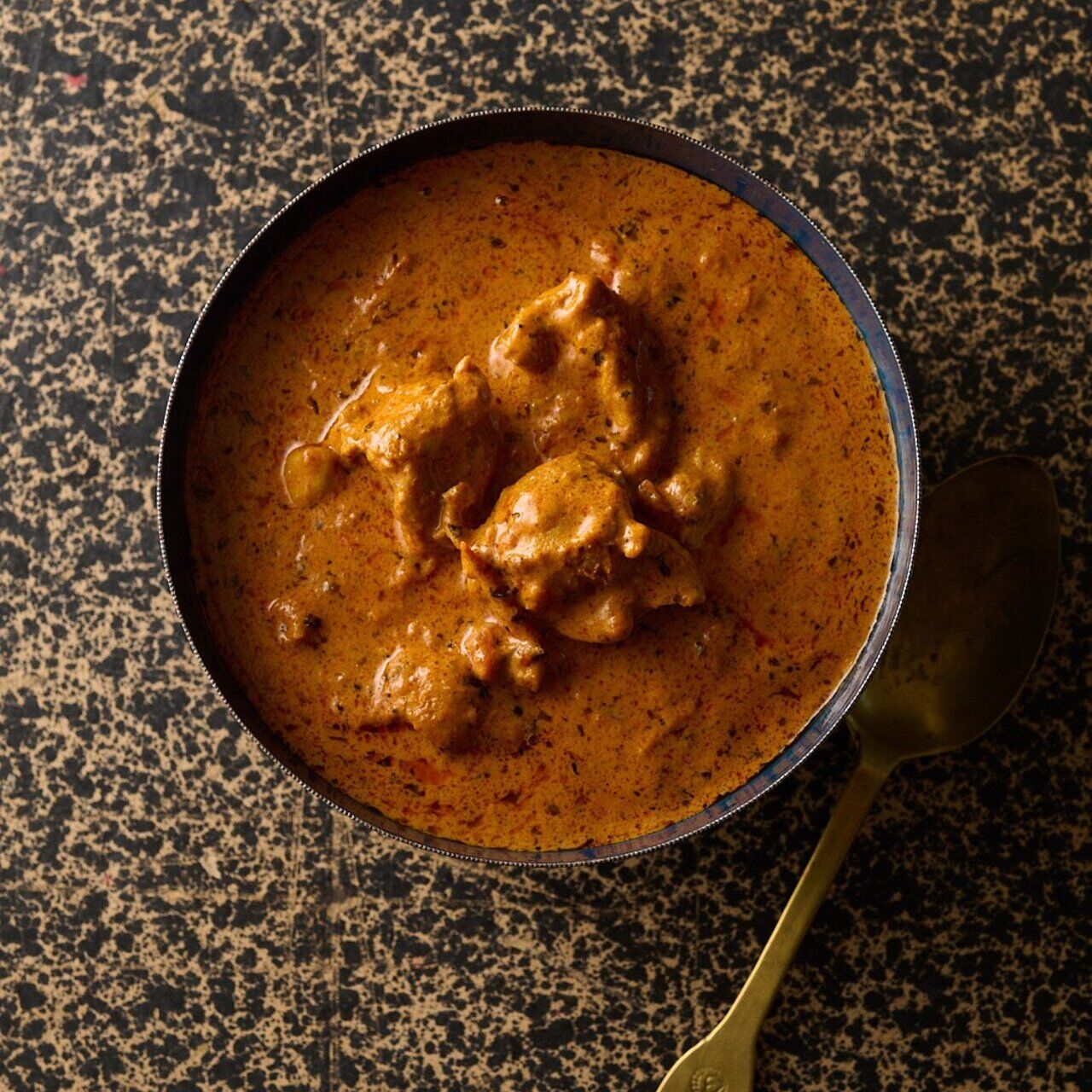 カルダモンの香りとトマトの酸味を効かせた大人のバターチキン。バターとカスリメティが好相性の芳醇な味わい。
