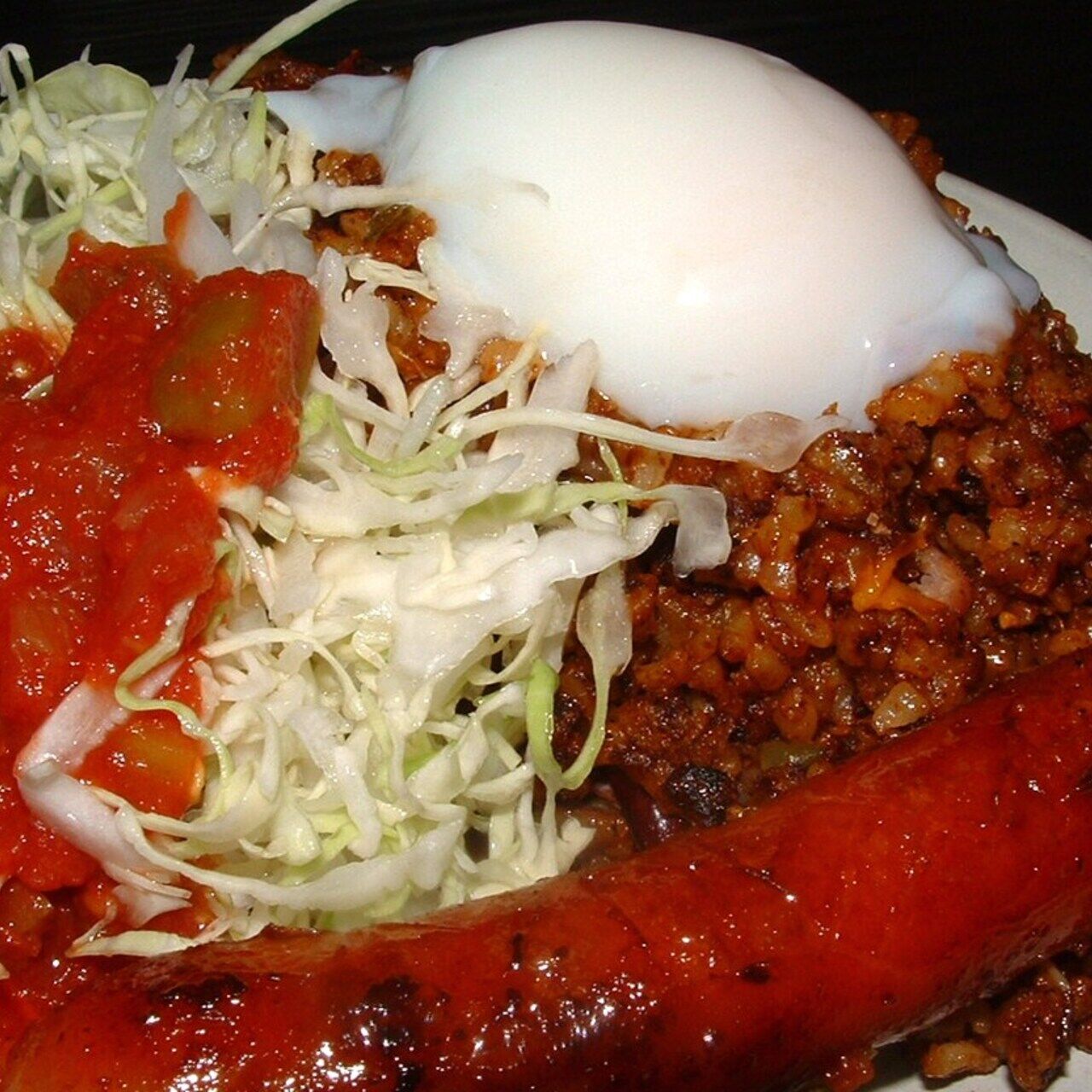 ジャンバラヤの上に焼きたてチョリソをのせました。