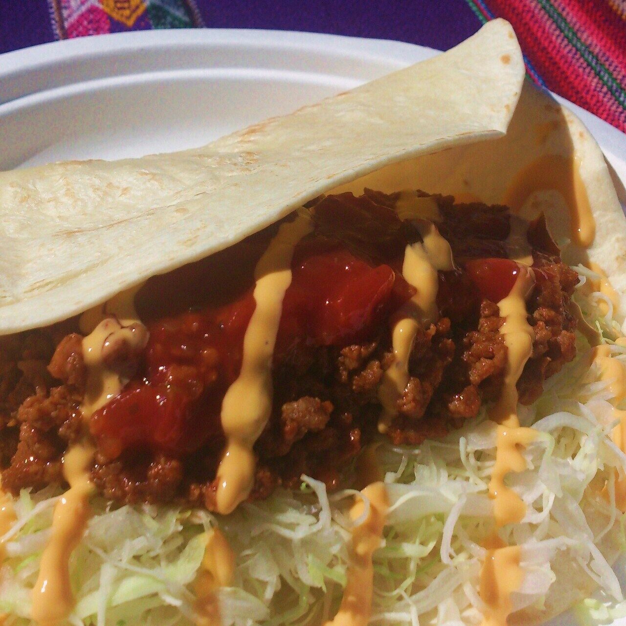 ソフト・トルティーヤにタコミートとキャベツを挟みました。