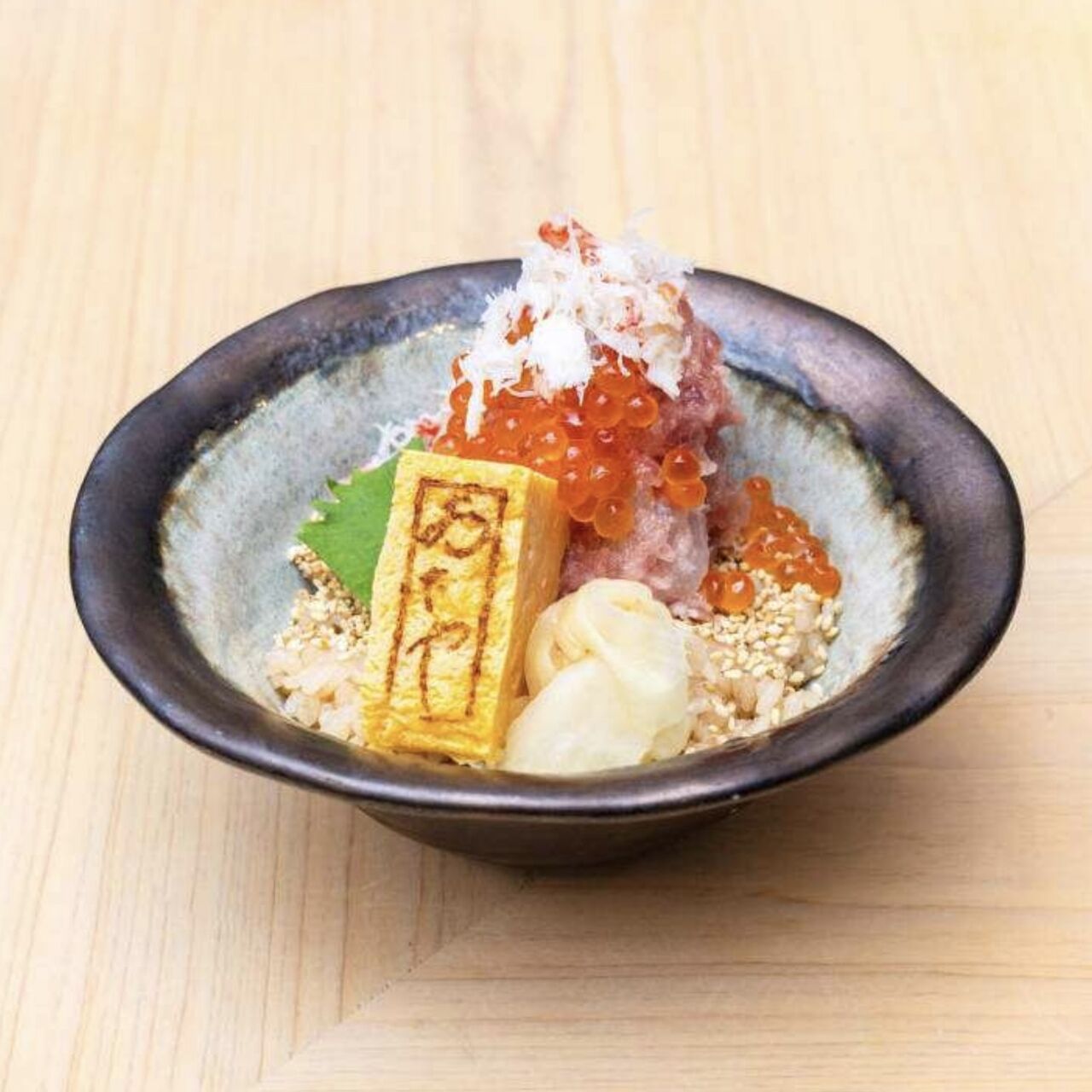 刻んだネタと生海苔、沢庵、納豆がよく合います。食中毒防止の為生卵の提供を中止しております。