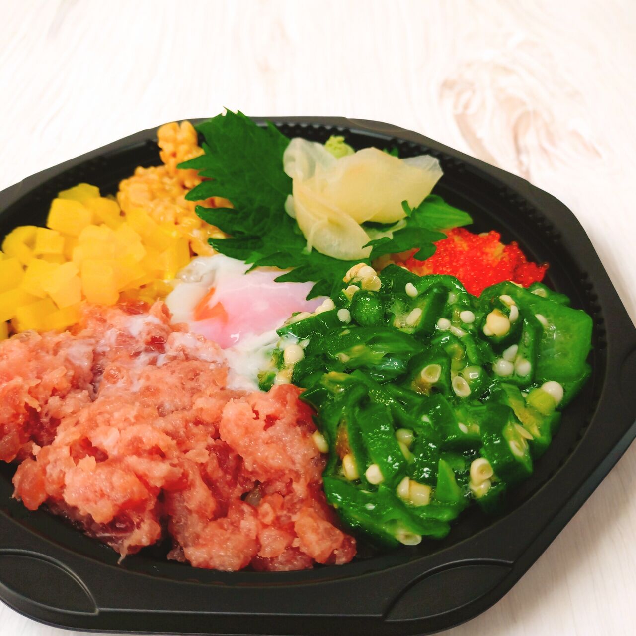 刻んだネタと生海苔、沢庵、納豆がよく合います。食中毒防止の為生卵の提供を中止しております。