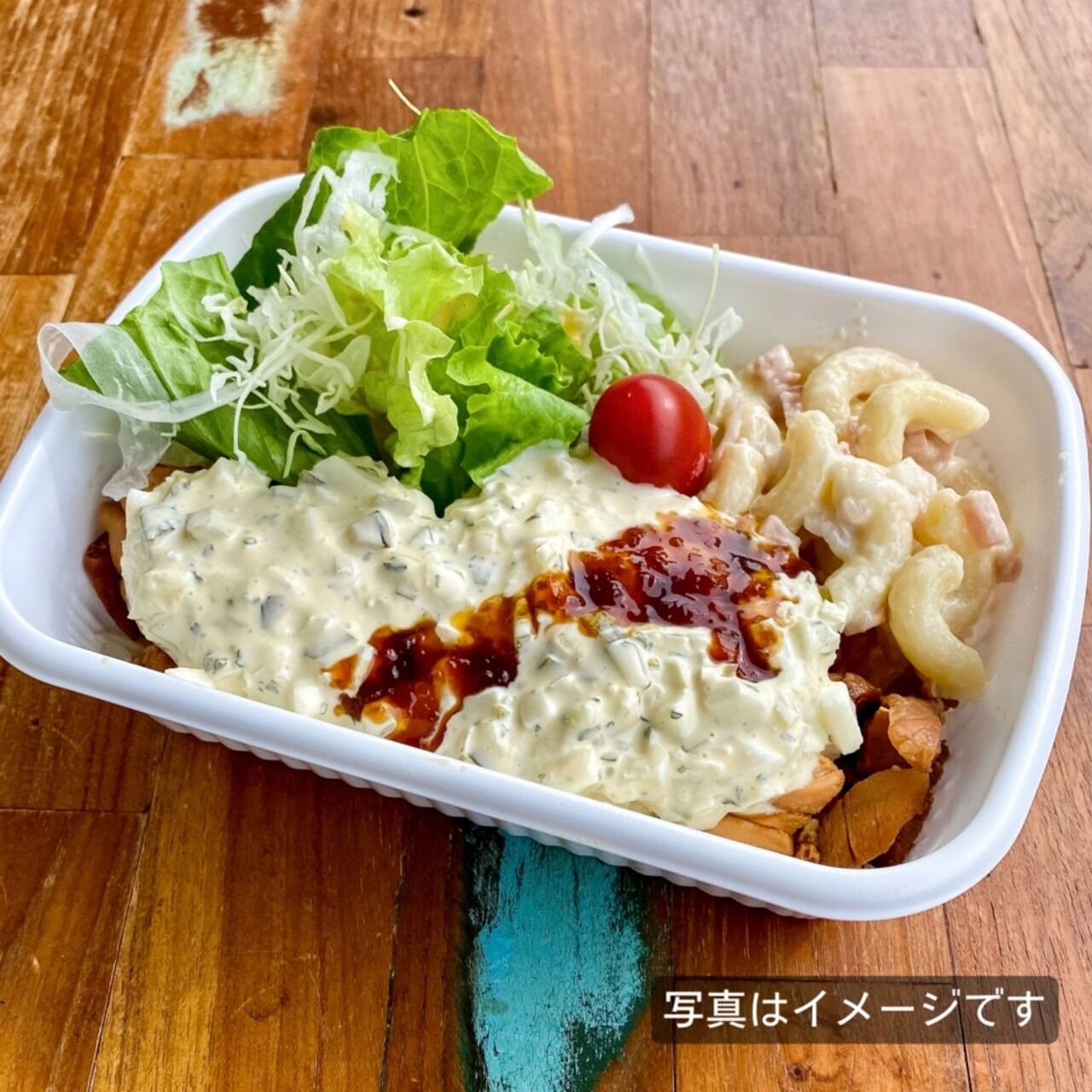 甘辛で柔らかい煮鶏に具沢山な自家製タルタルソースをたっぷりをかけました