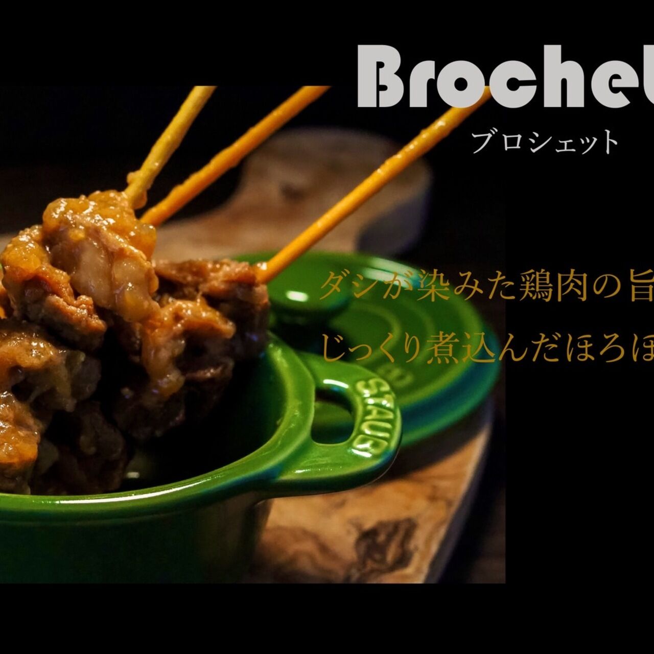 醤油ベースの甘辛い煮汁でじっくり煮込んだしみしみのもも串です。
