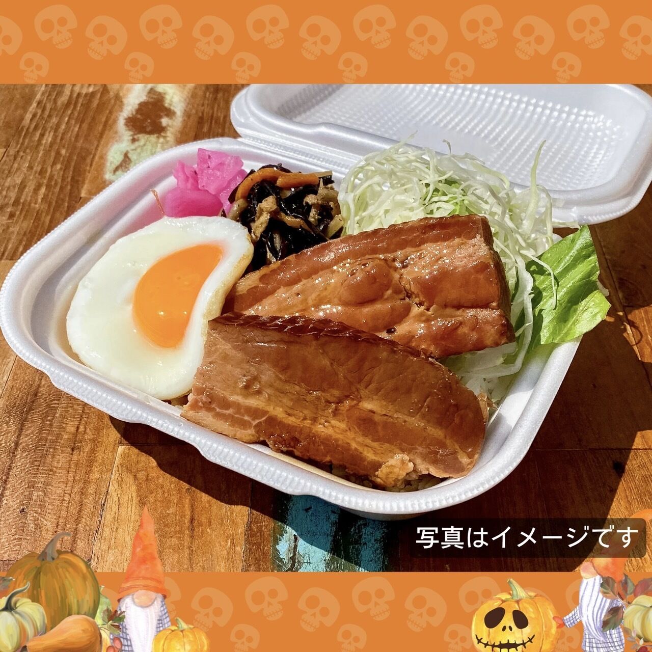 箸で崩れるほど柔らかく煮込んだ厚切り自家製チャーシューをダブル(2枚)のリッチなお弁当!とろ~り目玉焼きトッピング