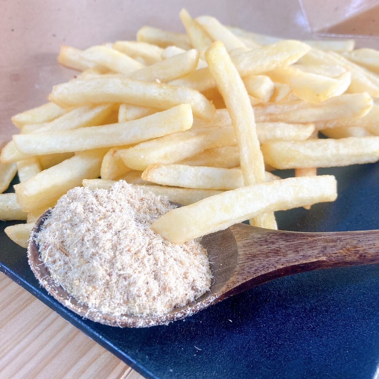 唐揚げと同じ出汁を使って炊いた後に、鷄節を混ぜ込んだご飯と唐揚げが3粒ついております。