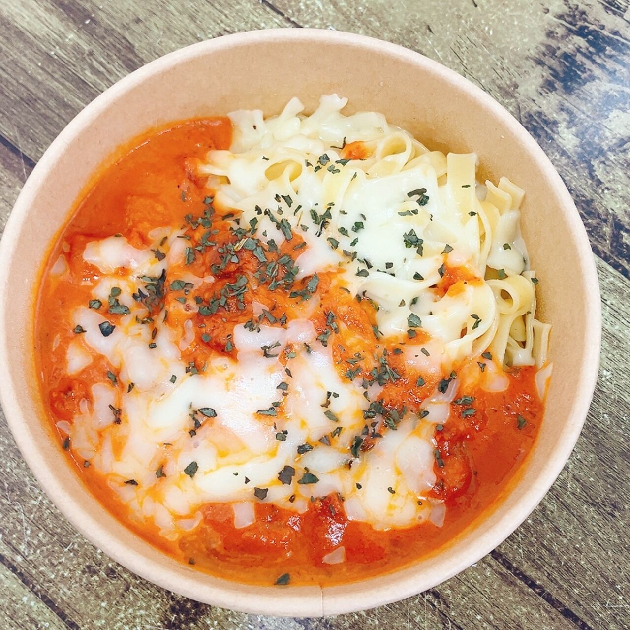 モッツァレラチーズとバジル香るトマトソースパスタ