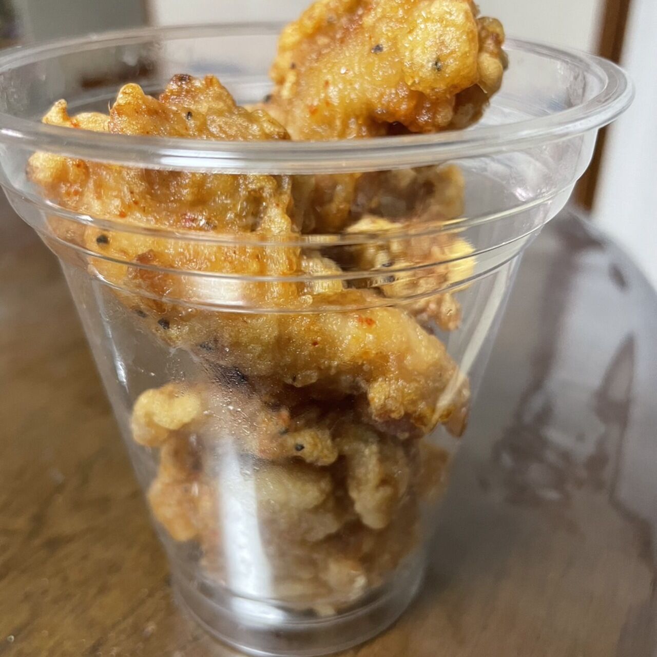 とても柔らかくてジューシーな鶏もも唐揚げに台湾独特の塩をふりかけて!大人気です。