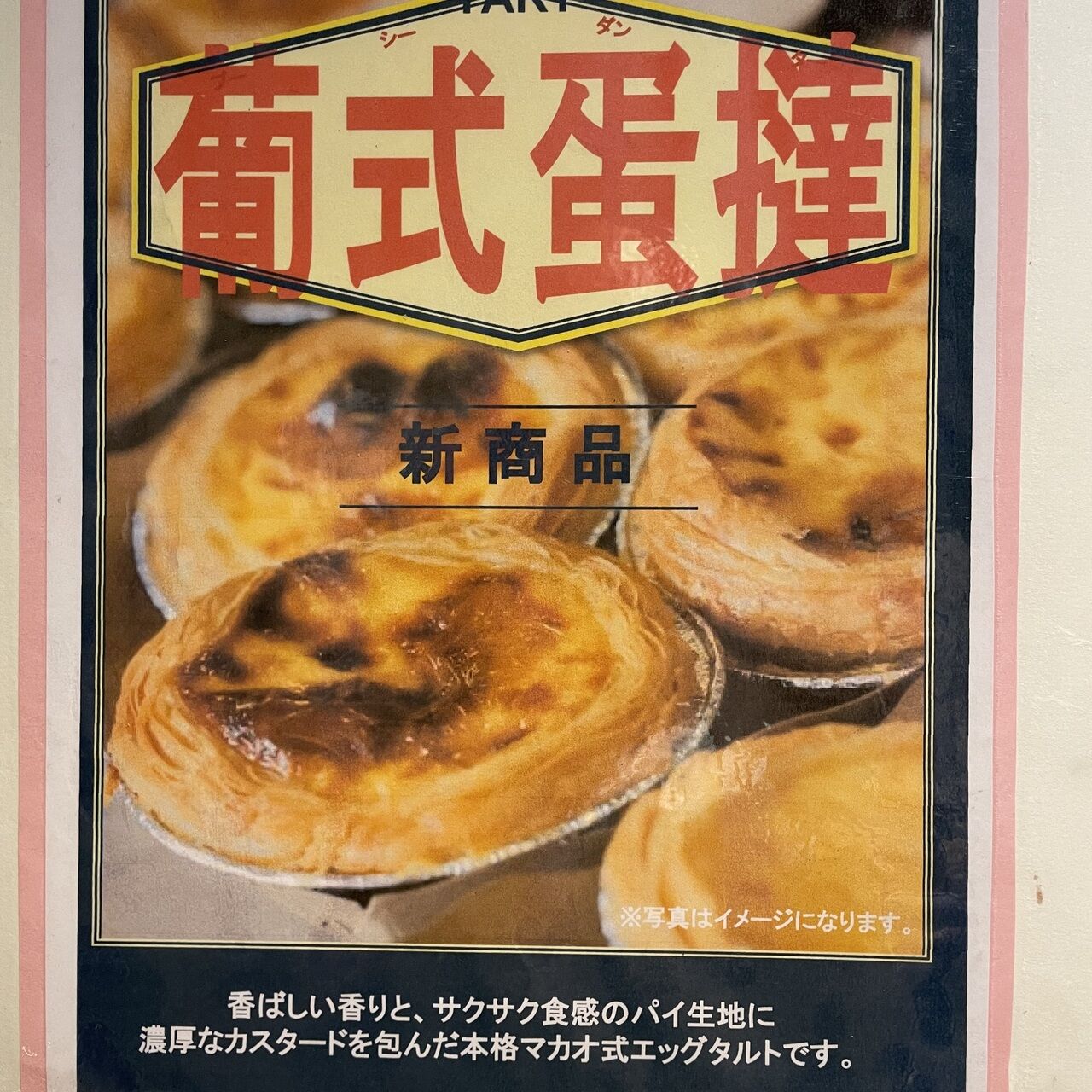 本格派マカオ式エッグタルトです。表面をバーナーで炙って提供致します。デザートにぜひ!一つ300円、3個700円