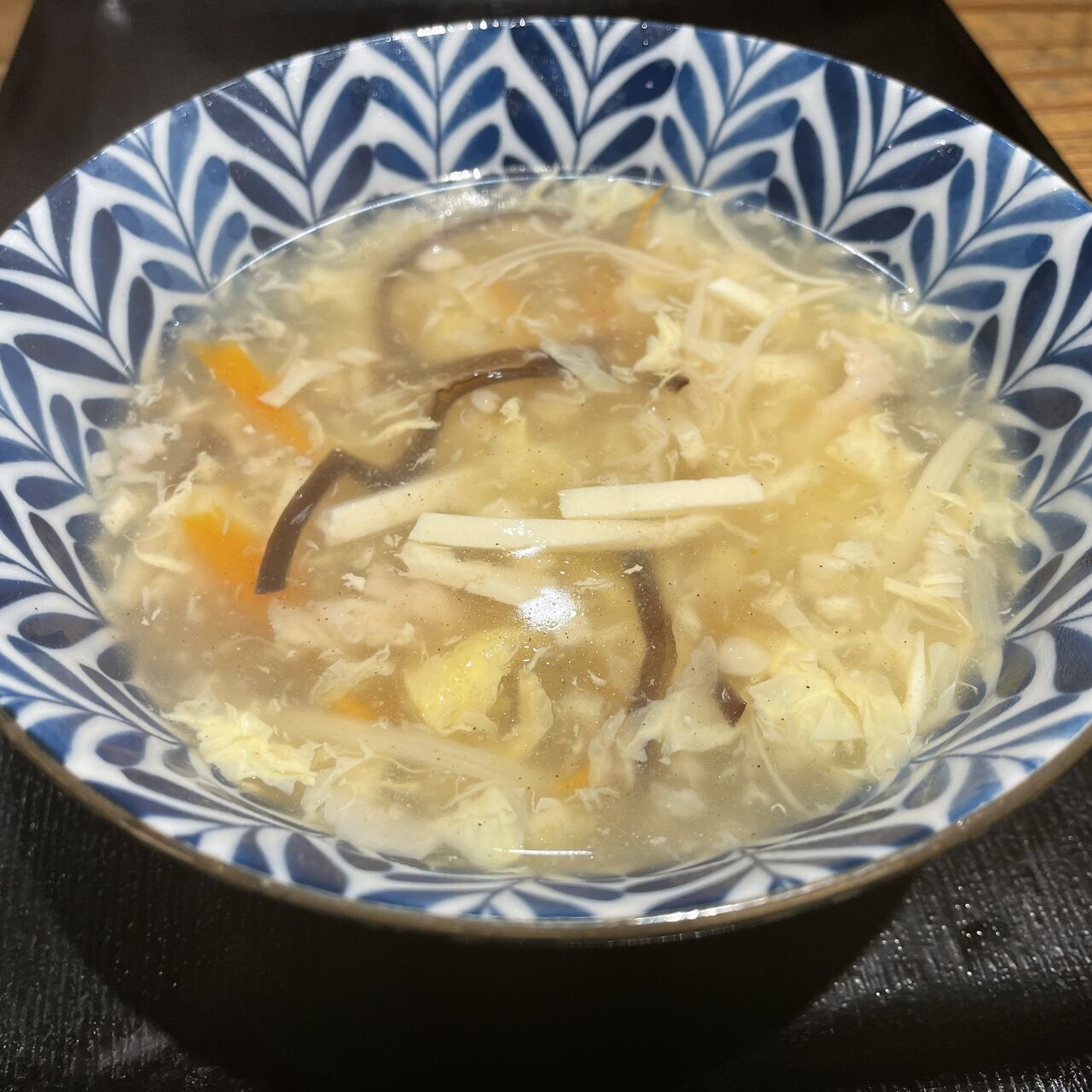 具材たっぷり(豆腐•キクラゲ•たけのこ•えのき•にんじん)ピリッと胡椒の効いた玉子とじのスープです。身体も心もぽっかぽか、あったまります。