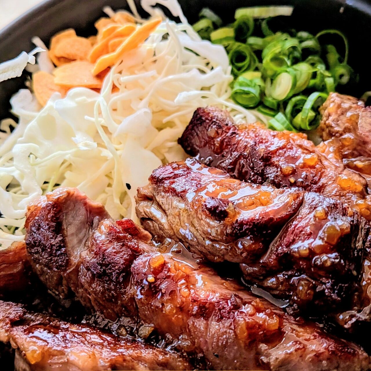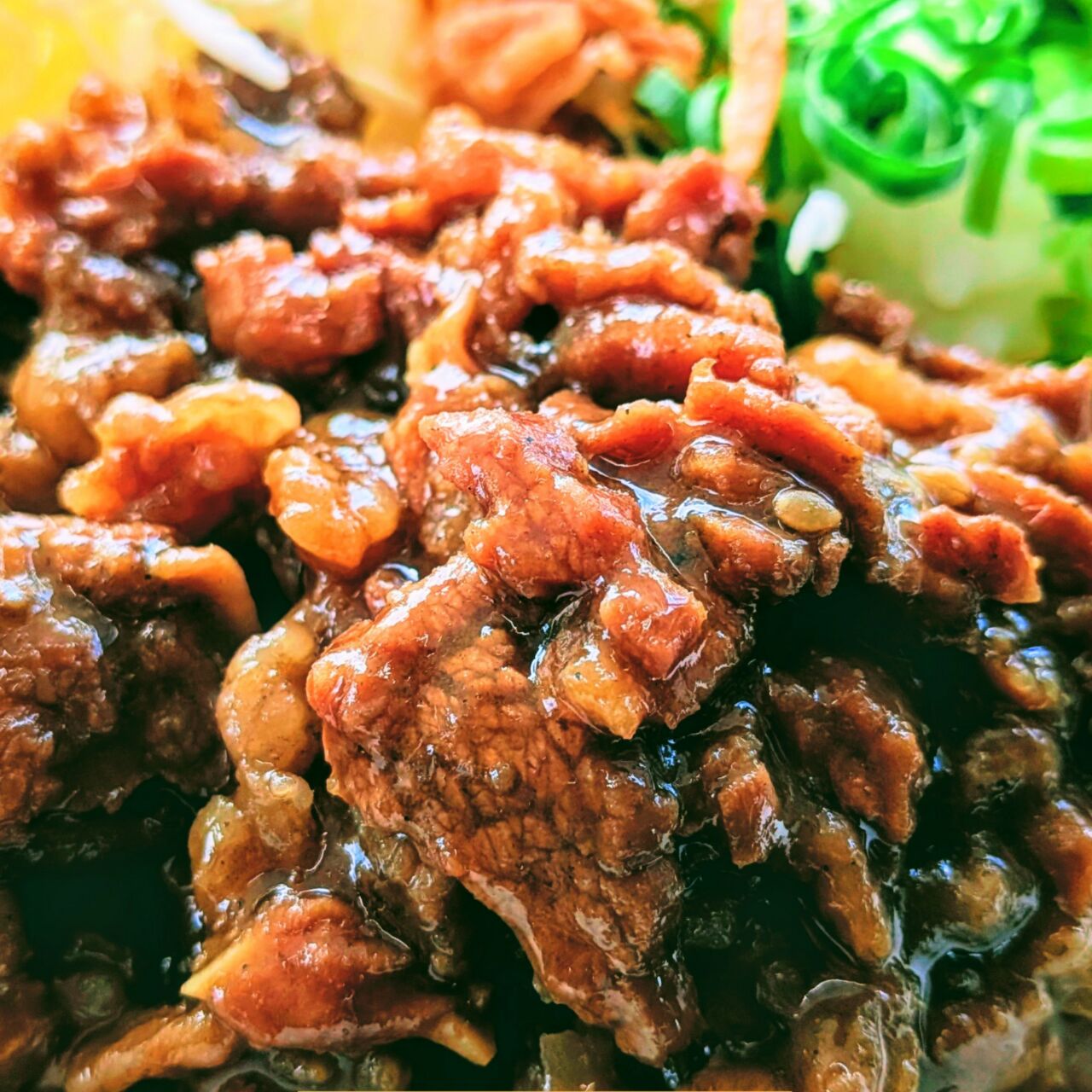 牛カルビ・豚角煮・鶏照り焼きを合わせた贅沢ドン