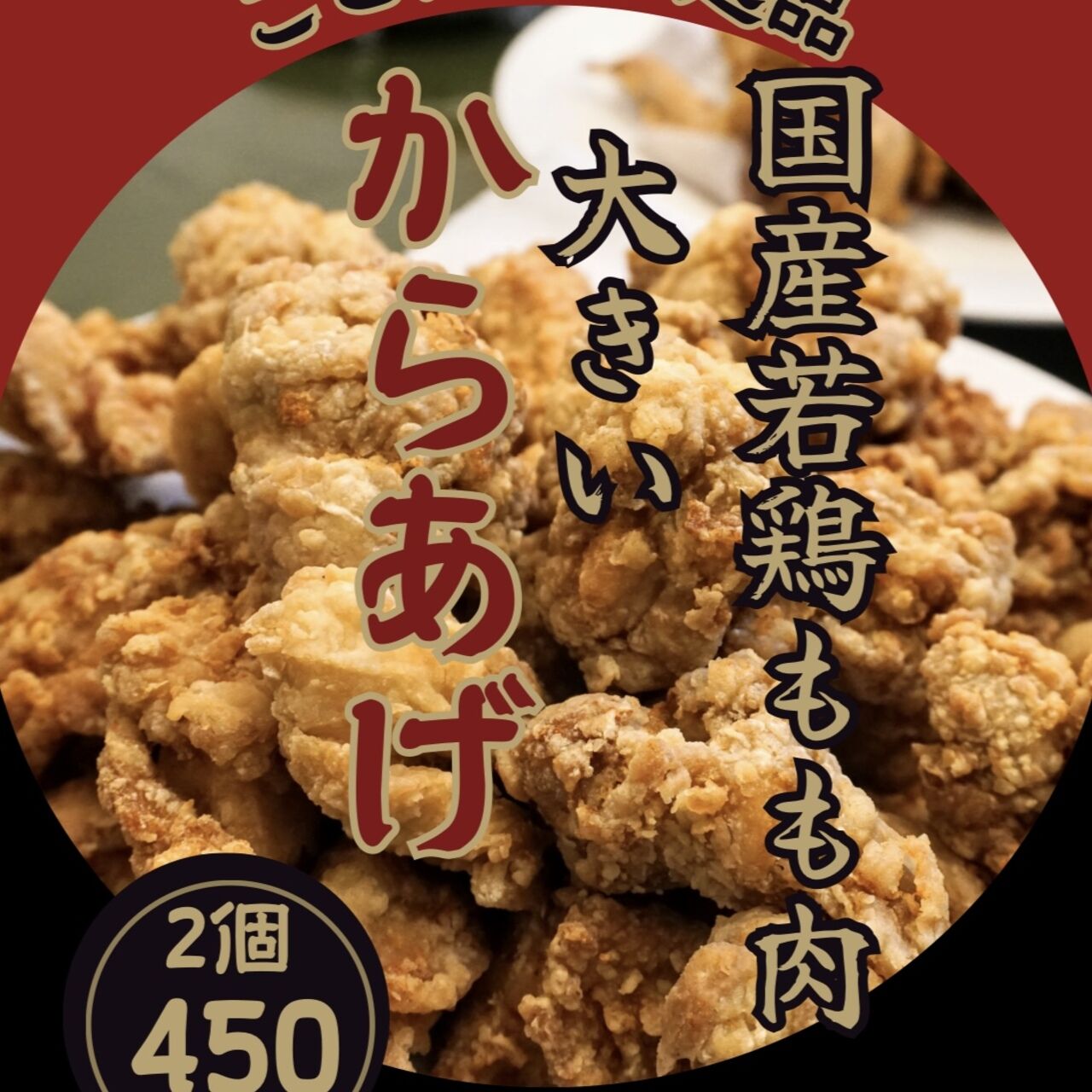 大きめにカットした国産若鶏のもも肉を無添加醤油で下味をつけ、カリッと仕上げたリピーターもたくさんいる逸品です!