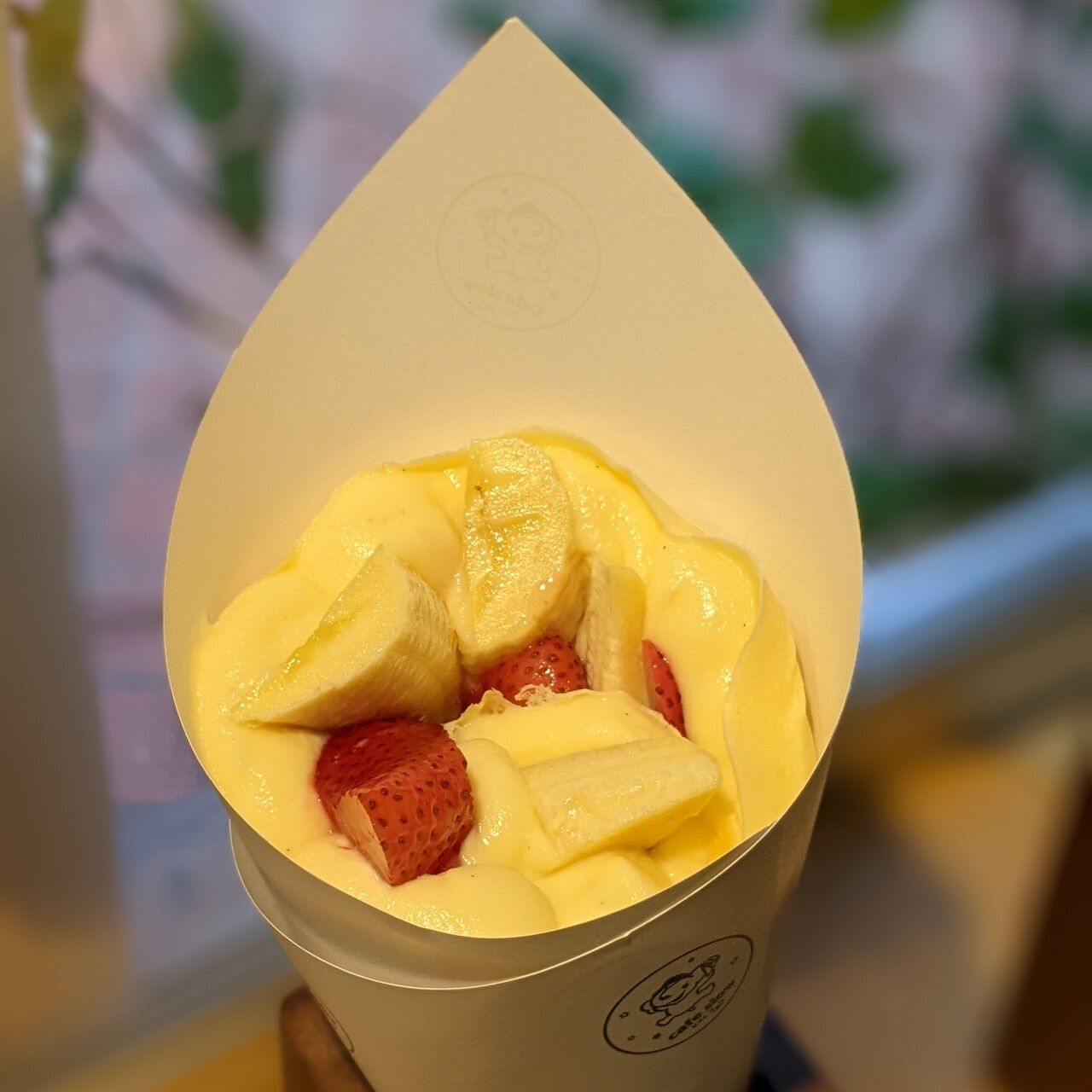 解凍したいちごとバナナにカスタードを合わせた、やさしい甘さのクレープ🍓🍌