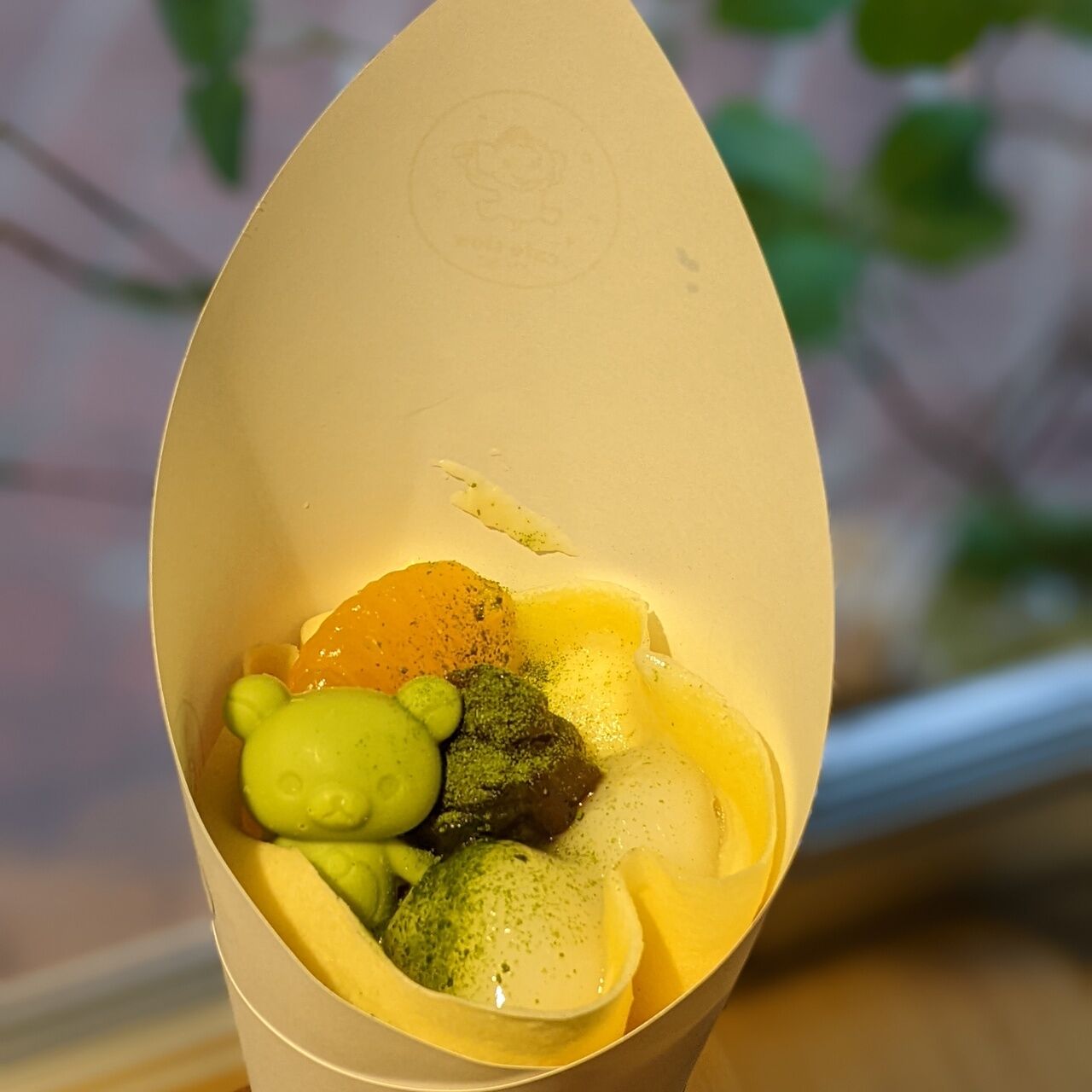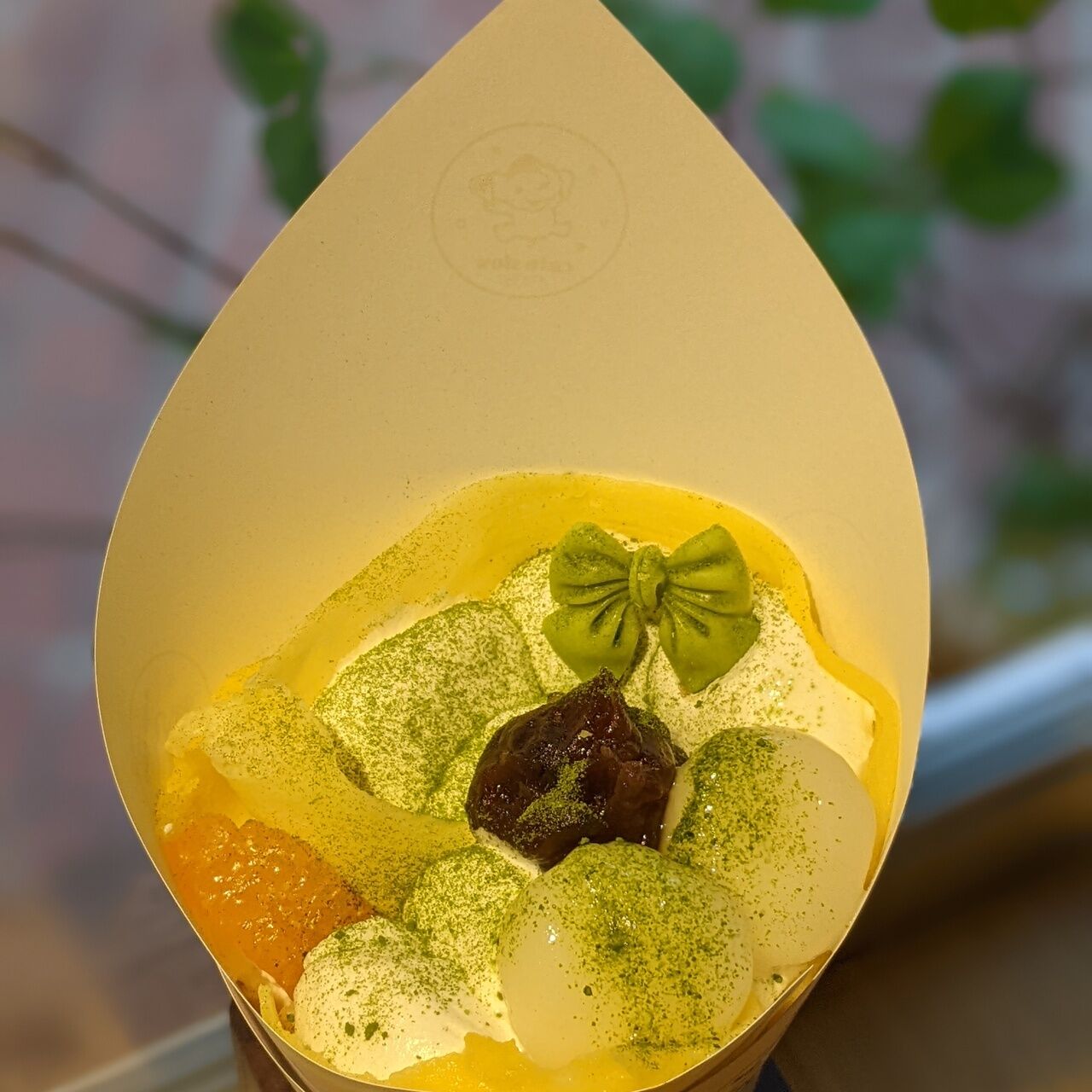 白玉とあんこにみかんとホイップを合わせた、ほっとする和クレープ🍡トッピングは全て無料です。