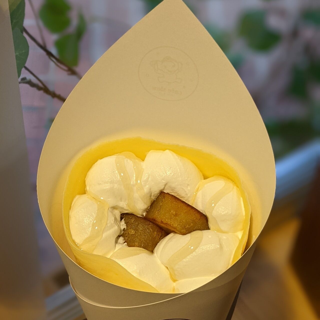ほくほく焼き芋に、やさしい甘さのはちみつとホイップを合わせたほっこりクレープ。