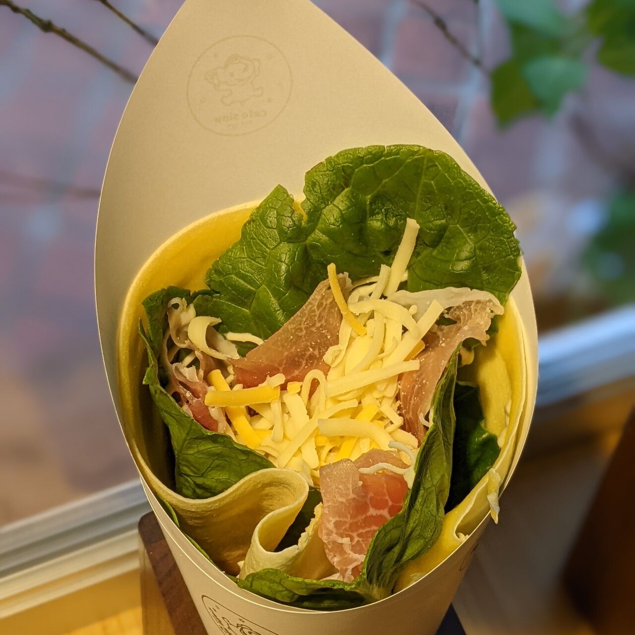 塩気のある生ハムとコクのあるチーズを合わせた、満足感のあるおかずクレープ。