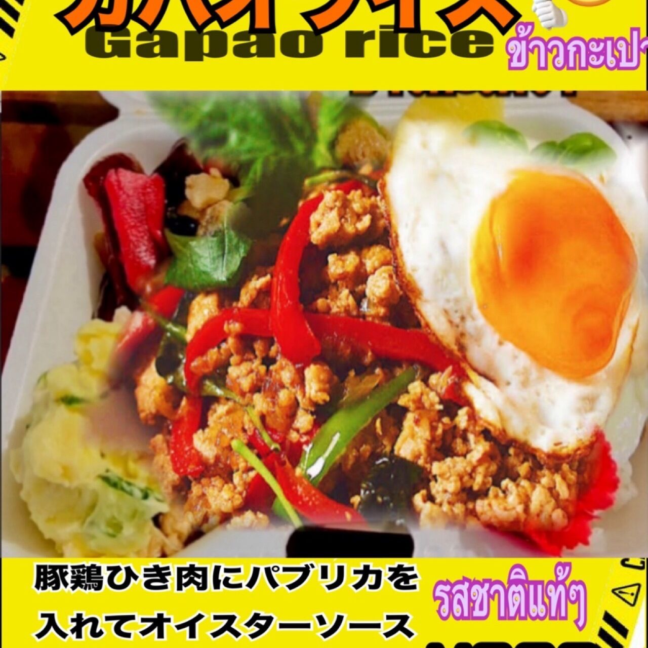 ガパオライスです!新鮮バジルとコブミカンの葉のバイマックルーを使った本格的で香り豊かなガパオライスです。香り豊かなガパオライスです。
