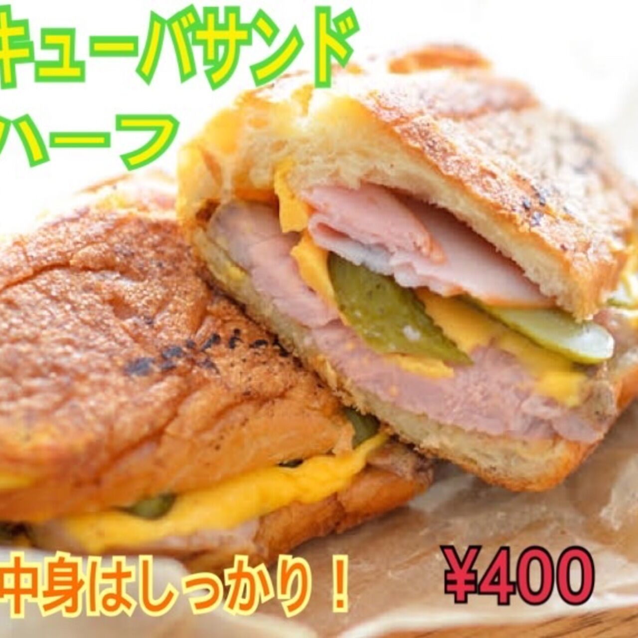 豚肉、はむ、チーズ、ピクルスをプレスしながら焼き上げたホットサンド。人気のキューバサンドのハーフをお試し価格でご提供
