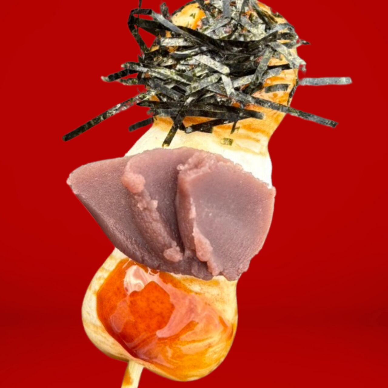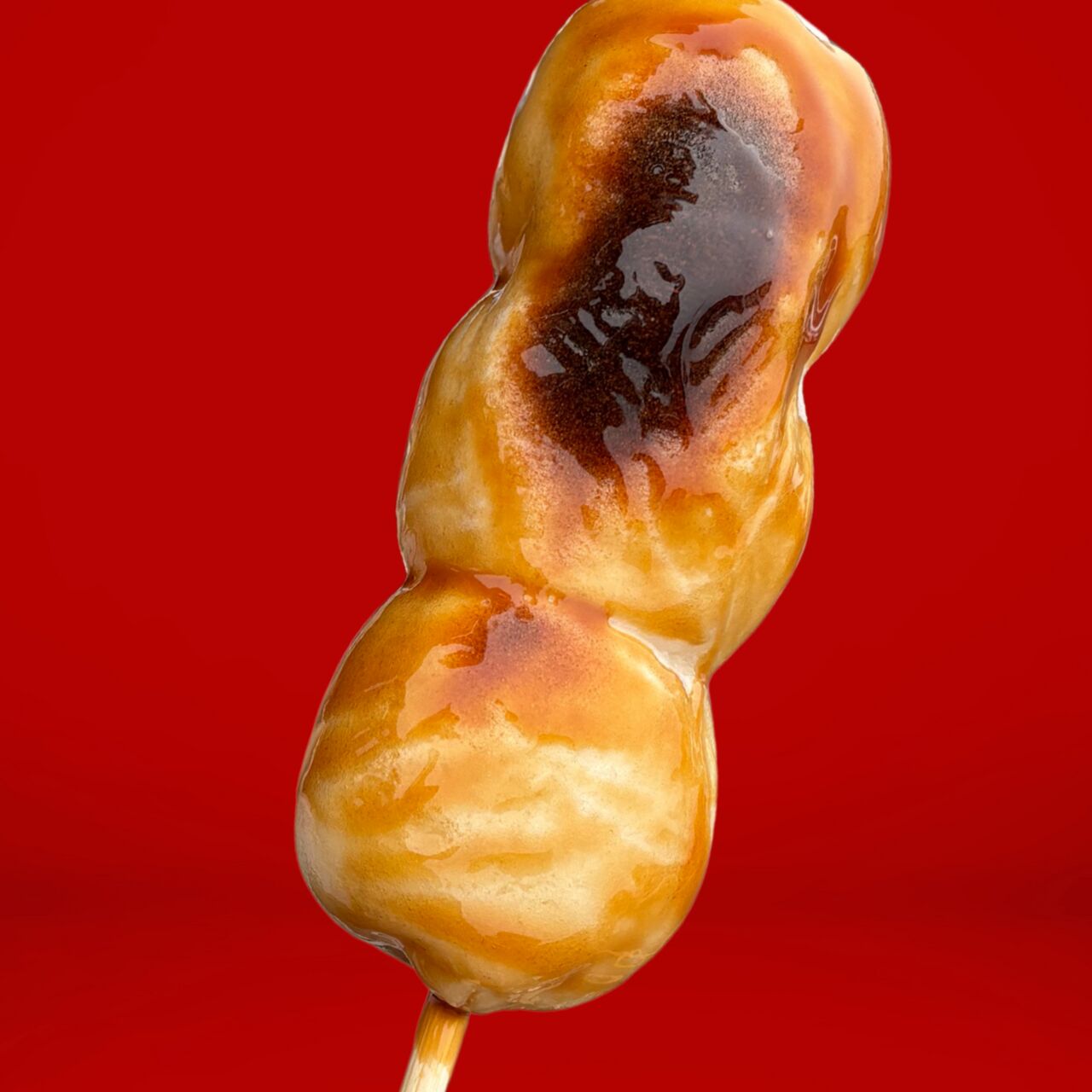 香ばしく焼き上げた大玉だんごに、とろりとした甘辛だれをからめました。 もちもちの食感と、たれの香ばしい旨みが広がる定番の味です。