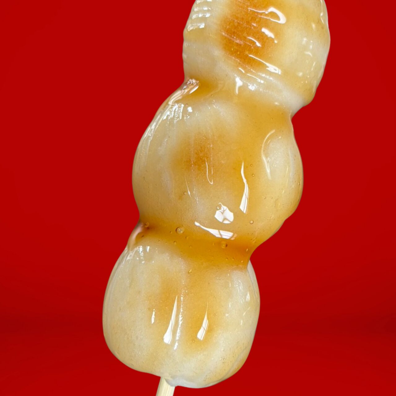 炭火で香ばしく焼き上げた、シンプルなしょうゆ味の大玉だんご。 もっちりとした食感に、しょうゆの香ばしさがあとを引く一本です。
