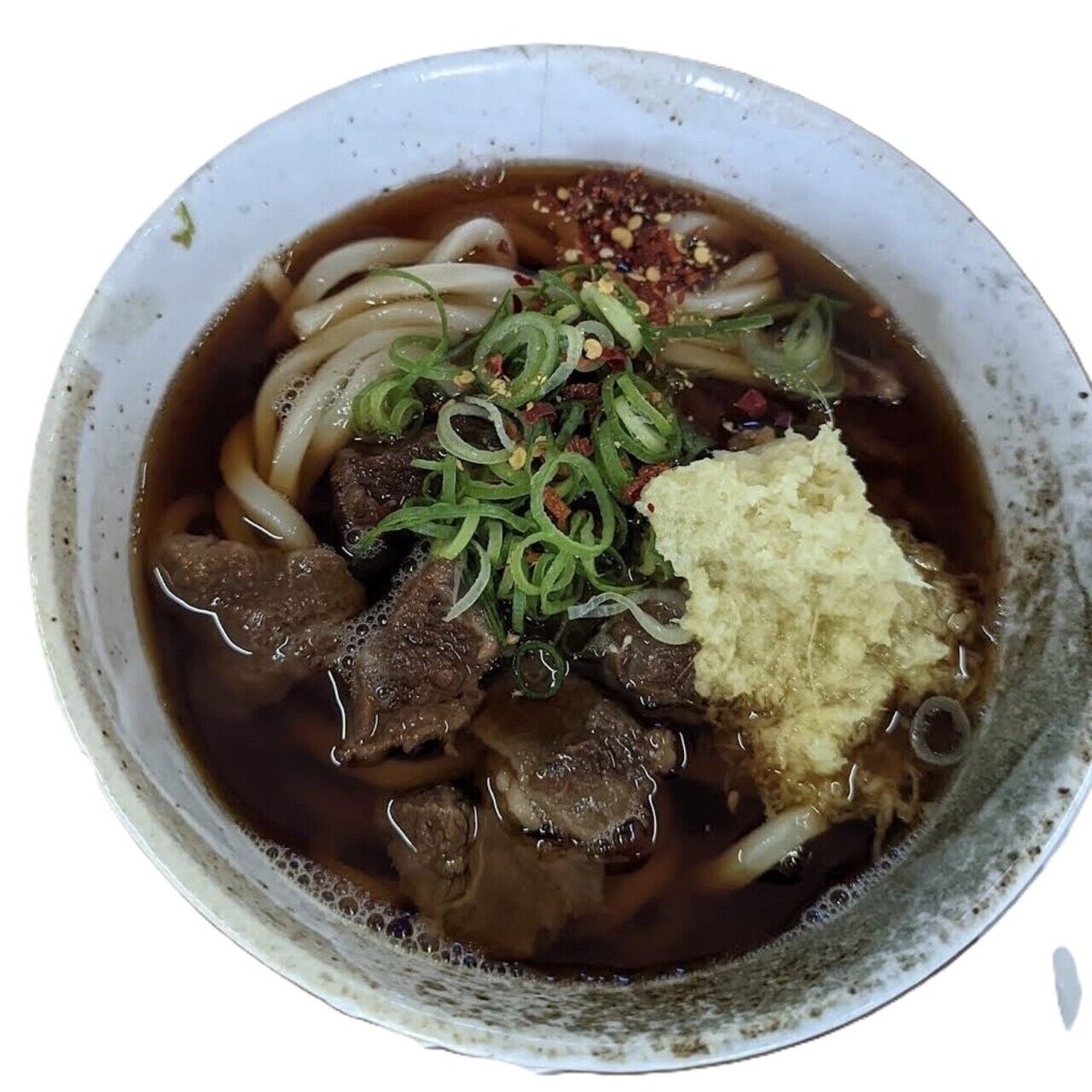 小倉発祥 国産牛稀少部位使用、醤油だしと生姜がクセになるうどんです