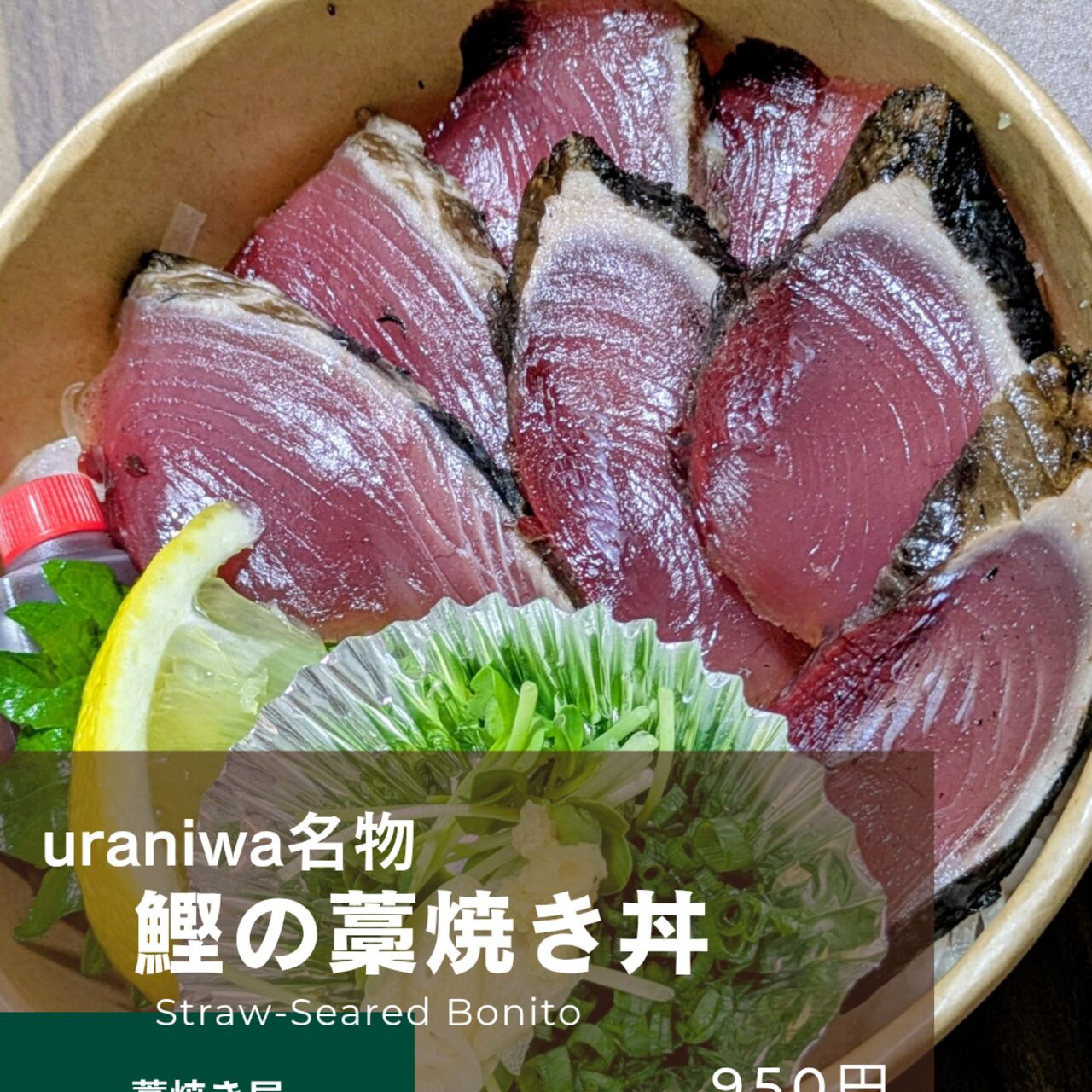 uraniwaといえば鰹の藁焼き丼!クセになる藁焼き。手作りポン酢で薬味と一緒に非日常のランチへ。