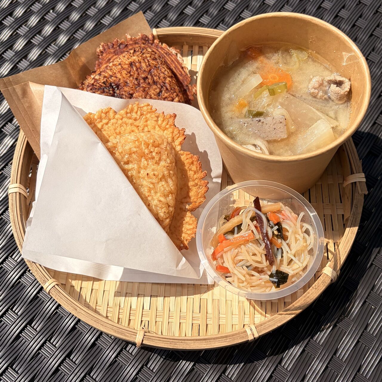 味噌か醤油の焼きおにぎり・スープ・小鉢のお得な3点セット