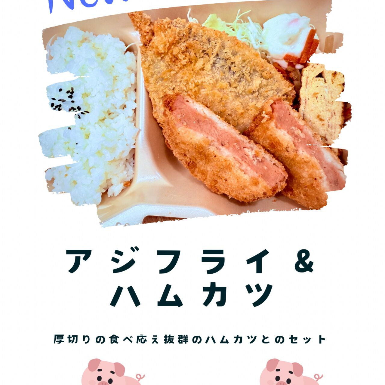 肉厚のハムカツとアジフライのセット