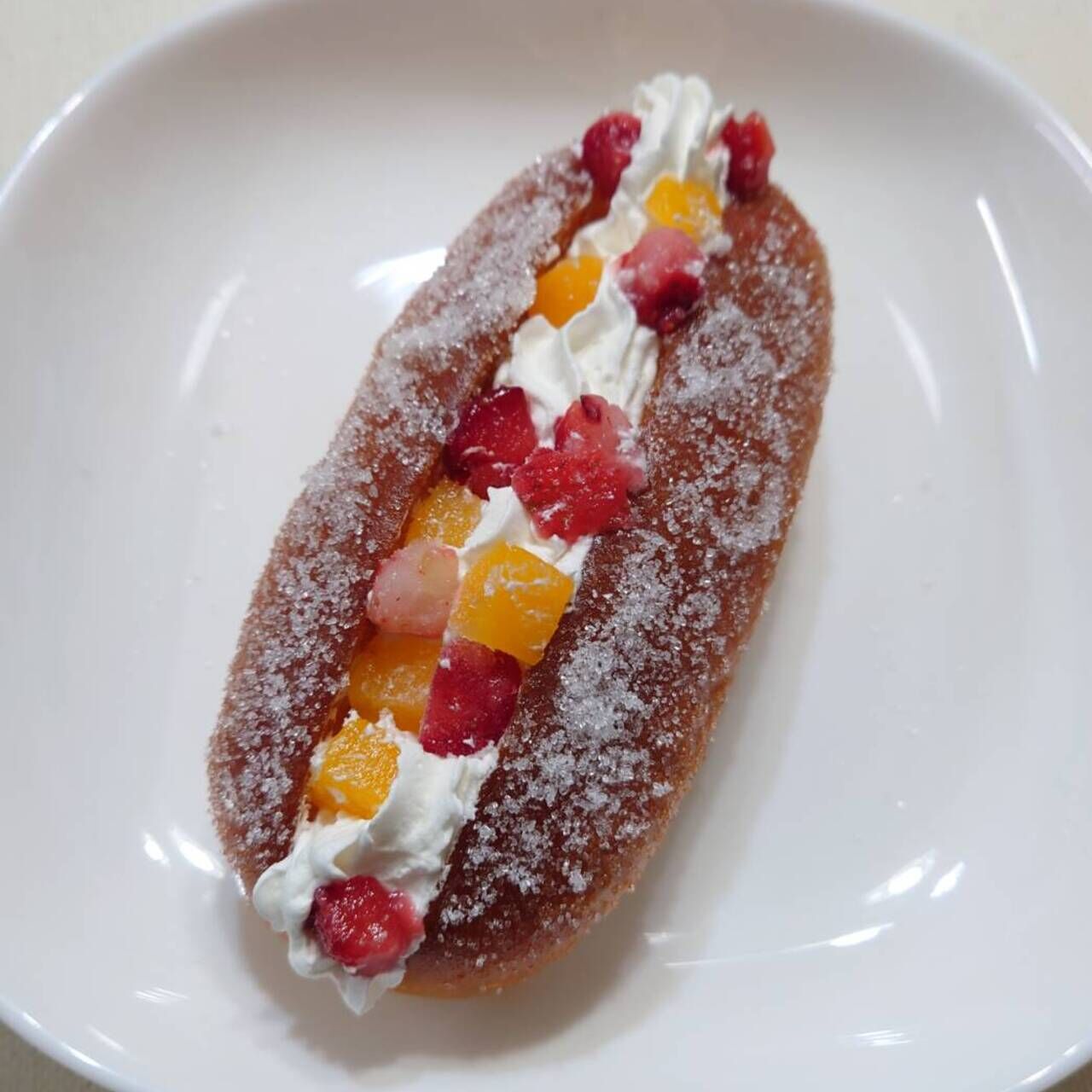 みんな大好きあげパンにフル−ツとホイップクリームをトッピングしました。