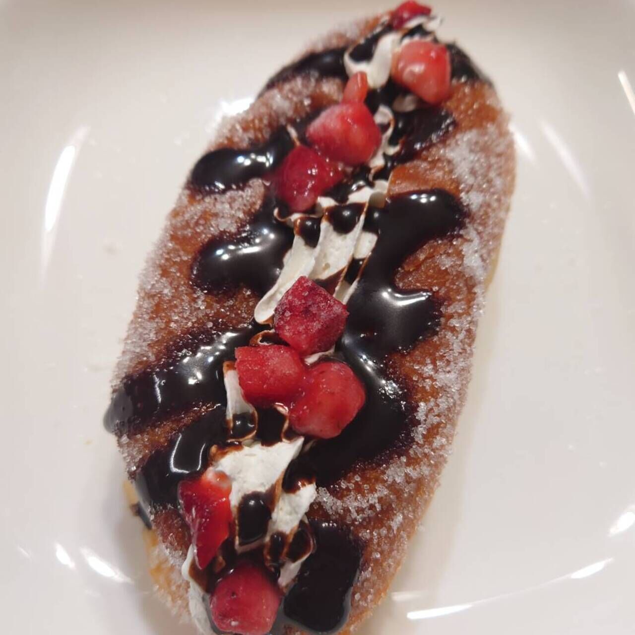みんな大好きあげパンにチョコイチゴとホイップクリームをトッピングしました。