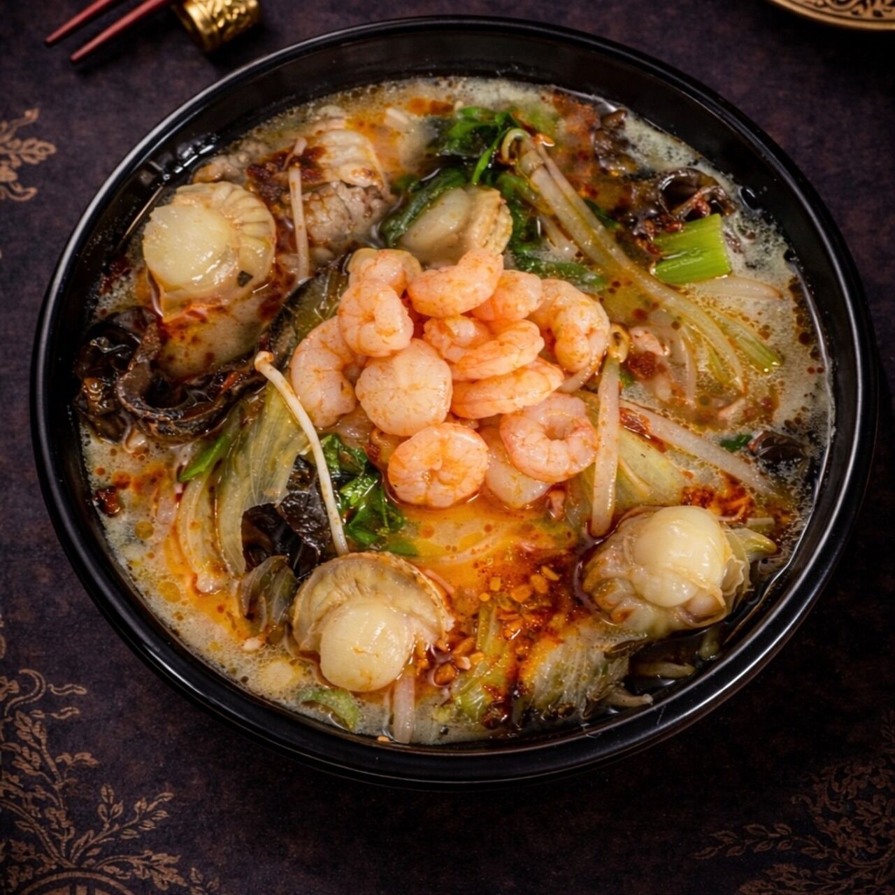 厳選した素材とスパイスを独自にブレンドして出来上がった麻辣湯。海鮮の旨味が溶け込んだスープと香り豊かな味わいを是非ご賞味ください。