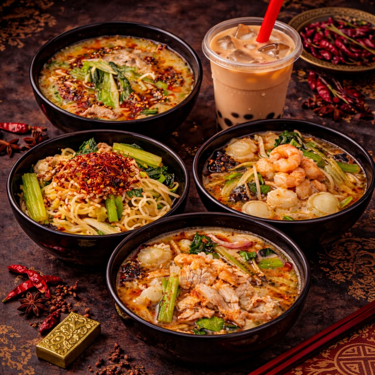 お好きな麻辣湯とセットで頼むとタピオカミルクティーを単品価格から100円引きいたします。