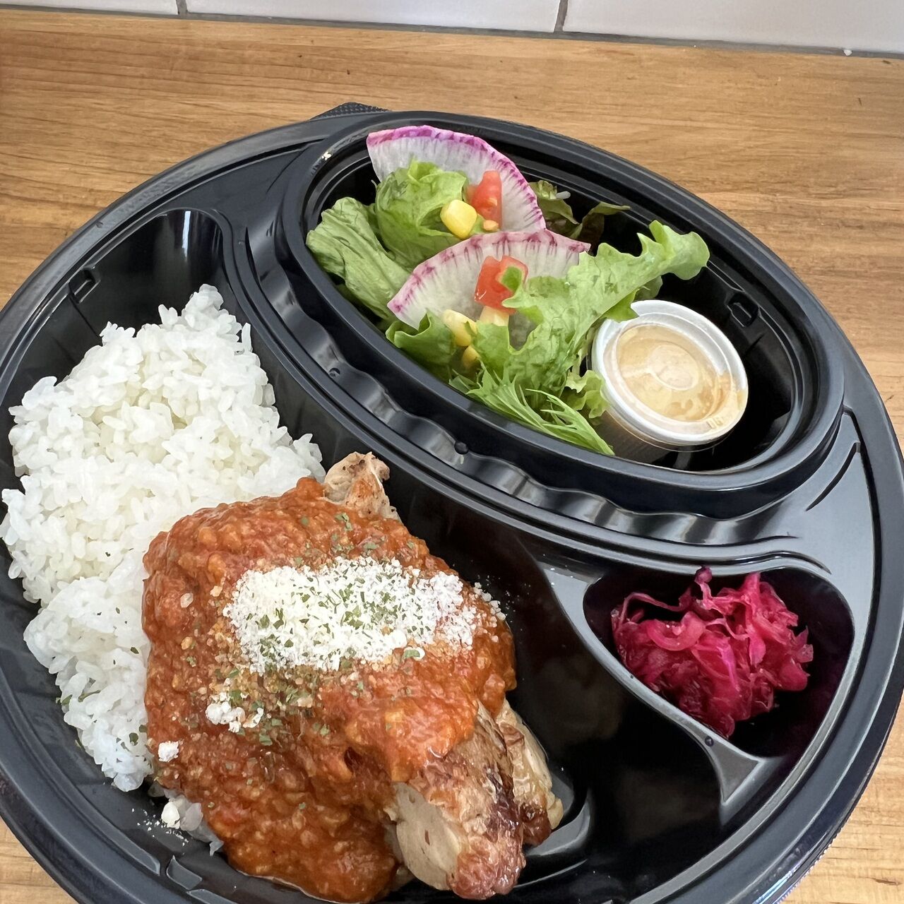 自家製のトマトキーマカレーにジャークチキンを トッピング!! ジャークチキンは鶏肉をオリジナルスパイスに 48時間漬け込み、柔らかく焼き上げました。