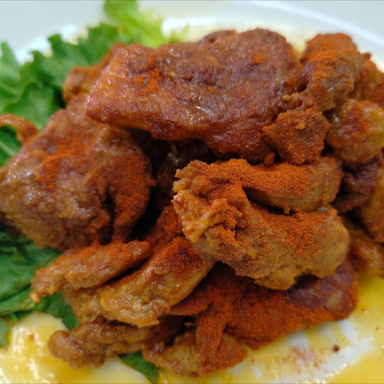 タンドリーチキンにレッドチリペッパーなど加え、辛いチキンとなっております
