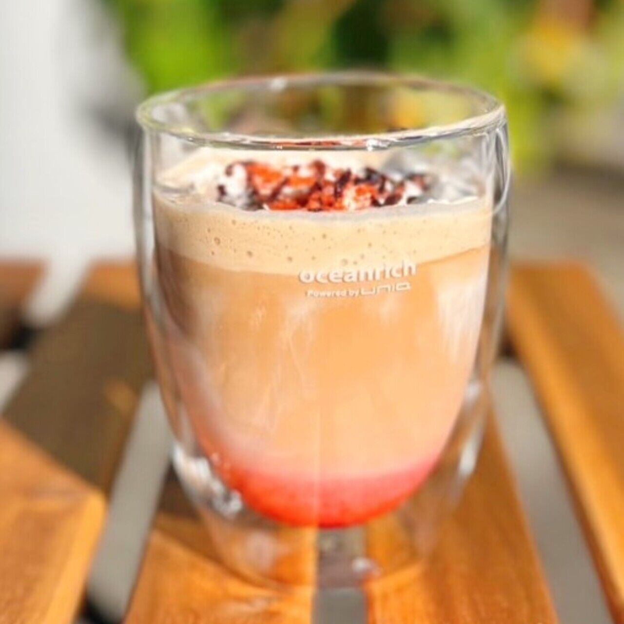 冬季限定のいちごとチョコのフレーバーラテ。程よい甘さがコーヒーを引き立てます。
