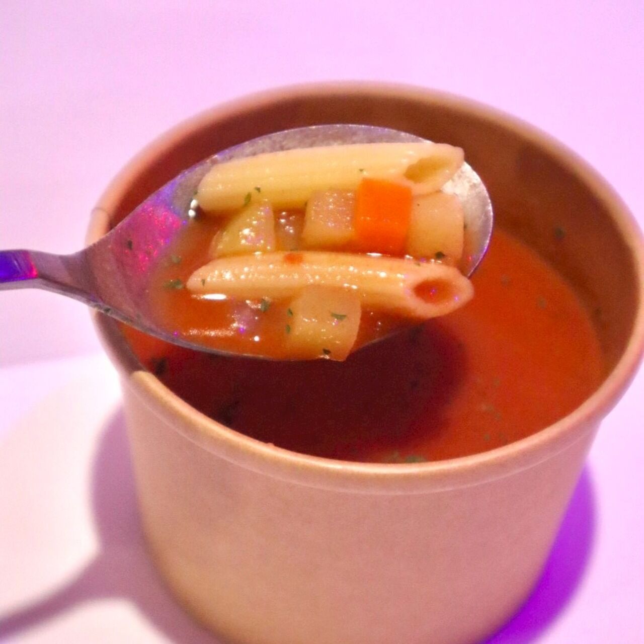 トマトと野菜の旨味が凝縮した本格派。もちもちペンネ入りで、ヘルシーながら満足感も抜群。一食で野菜の栄養が摂れる、Soup Atelie不動の人気No.1です