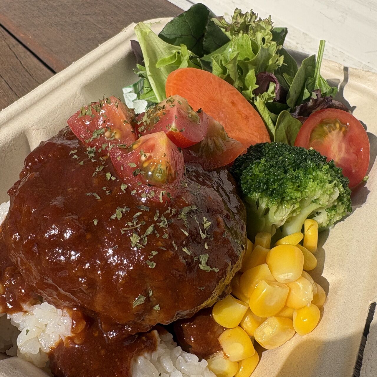 肉厚ジューシーなハンバーグの中にとろけるチーズが入ってます。トマトと味噌のコク旨ソースが絶品です