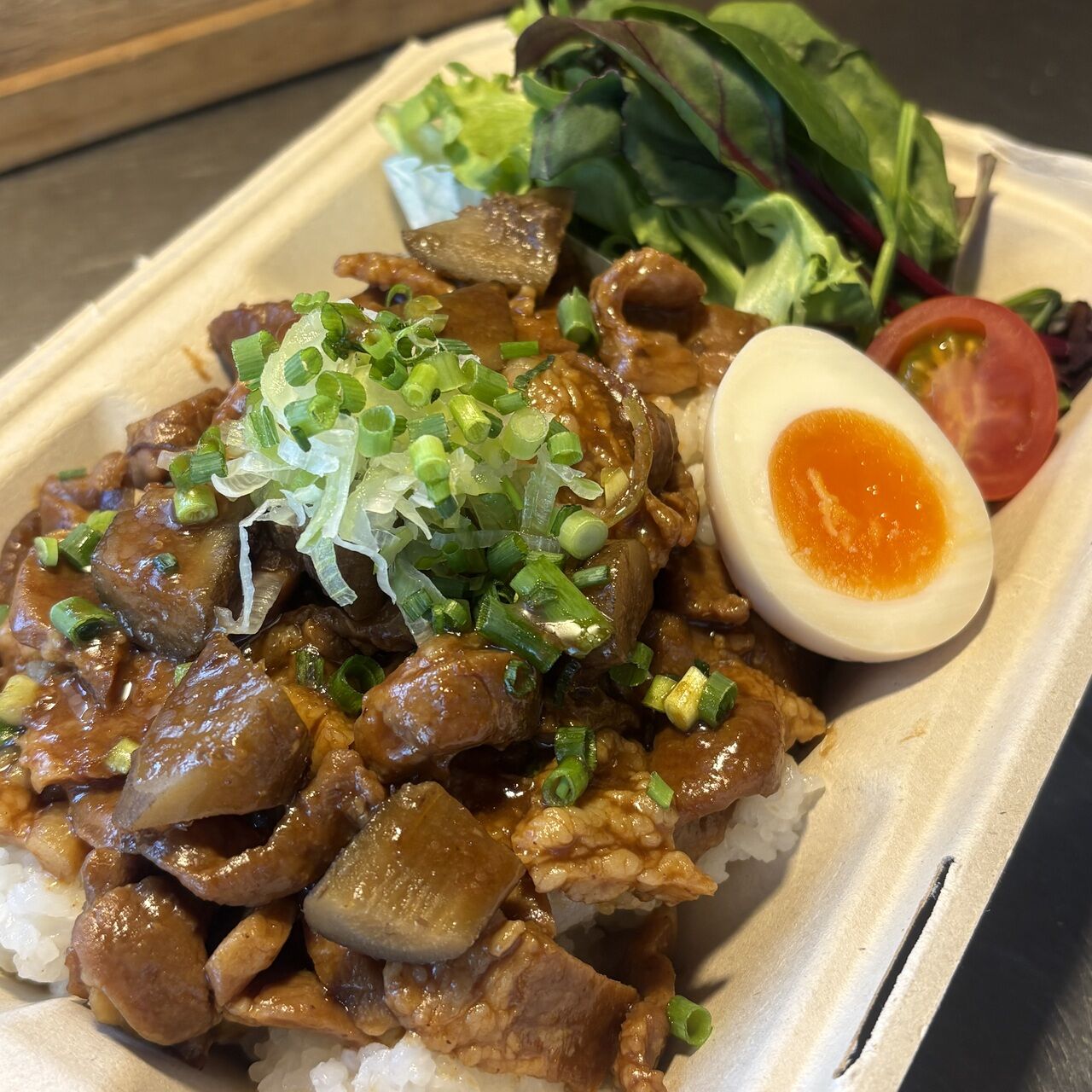 とろ、ふわ、柔らかい国産牛すじの旨みと極太なのにホクホクなごぼうが絶品の煮込みめしです。さらに牛すじ増量、味玉、新鮮サラダ付き。ボリューム満点なパワーランチです