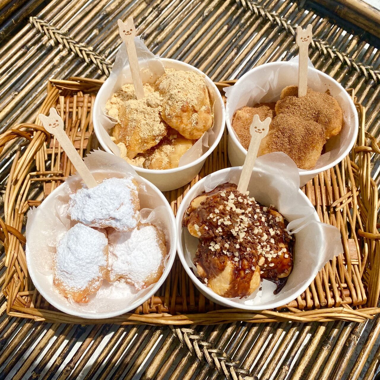 これはスィーツ。もちもちチーズパン『ポンデケージョ』を揚げて、トッピング。