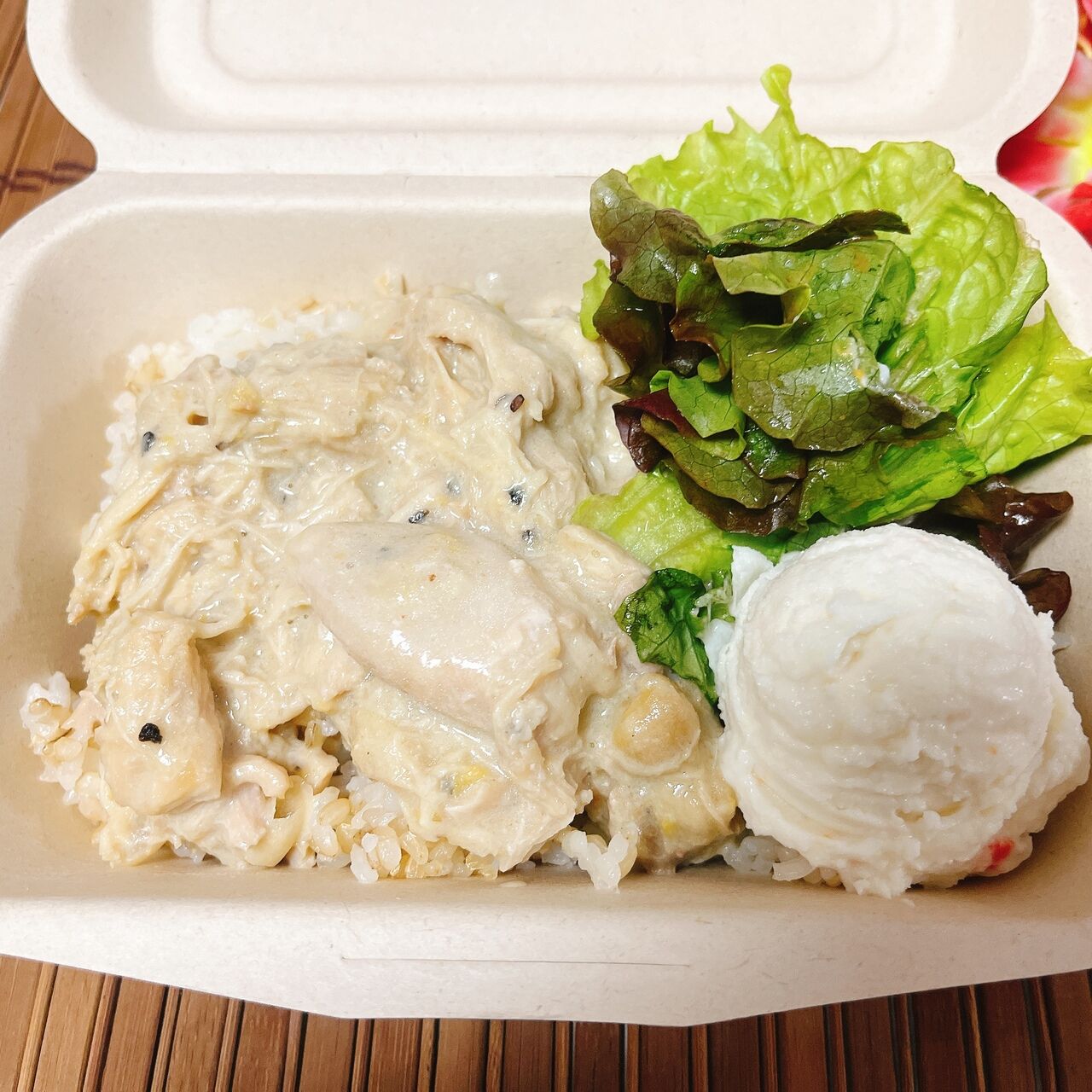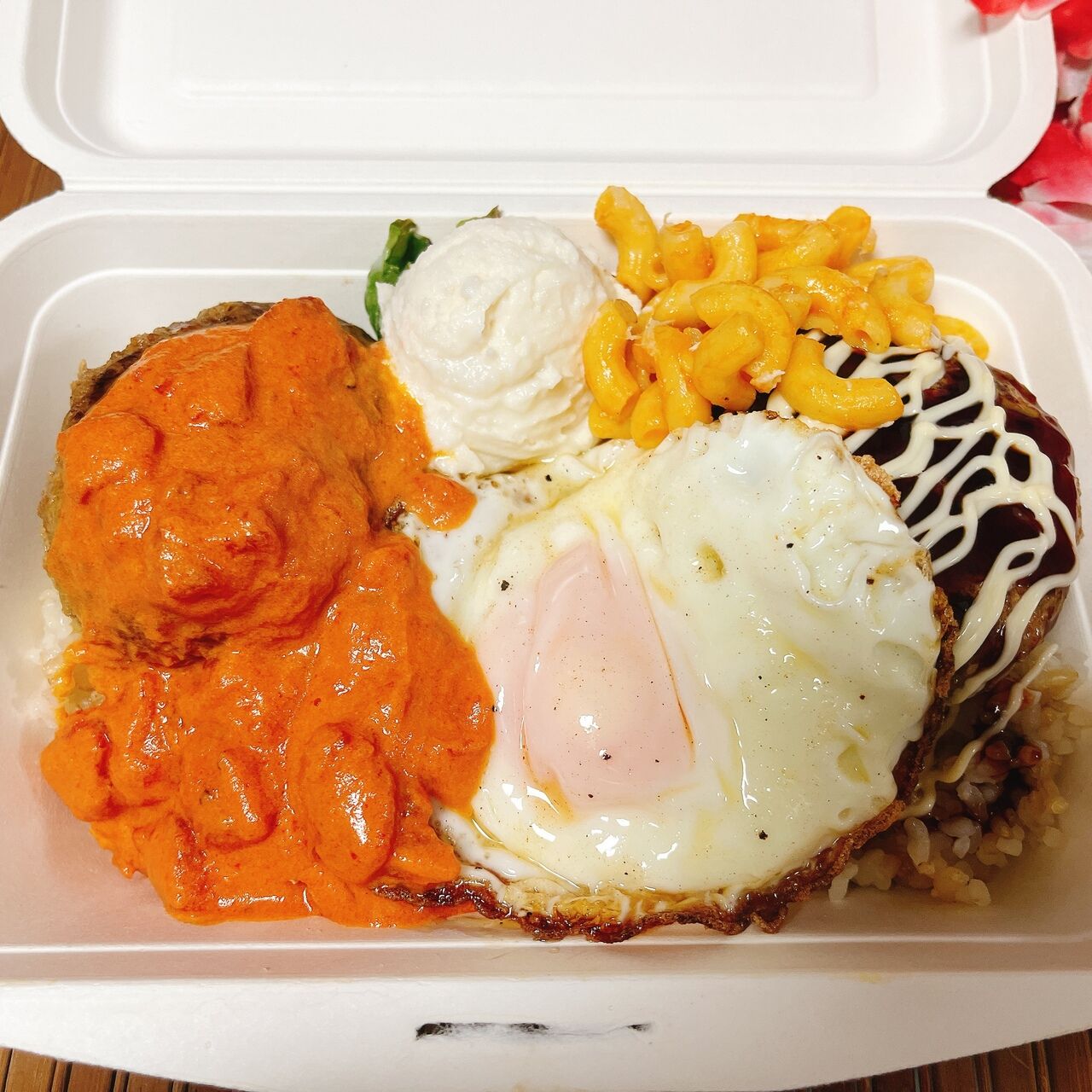 ロコモコ、ココナツチキンライス、セサミーポークなどのセットが出来ます。