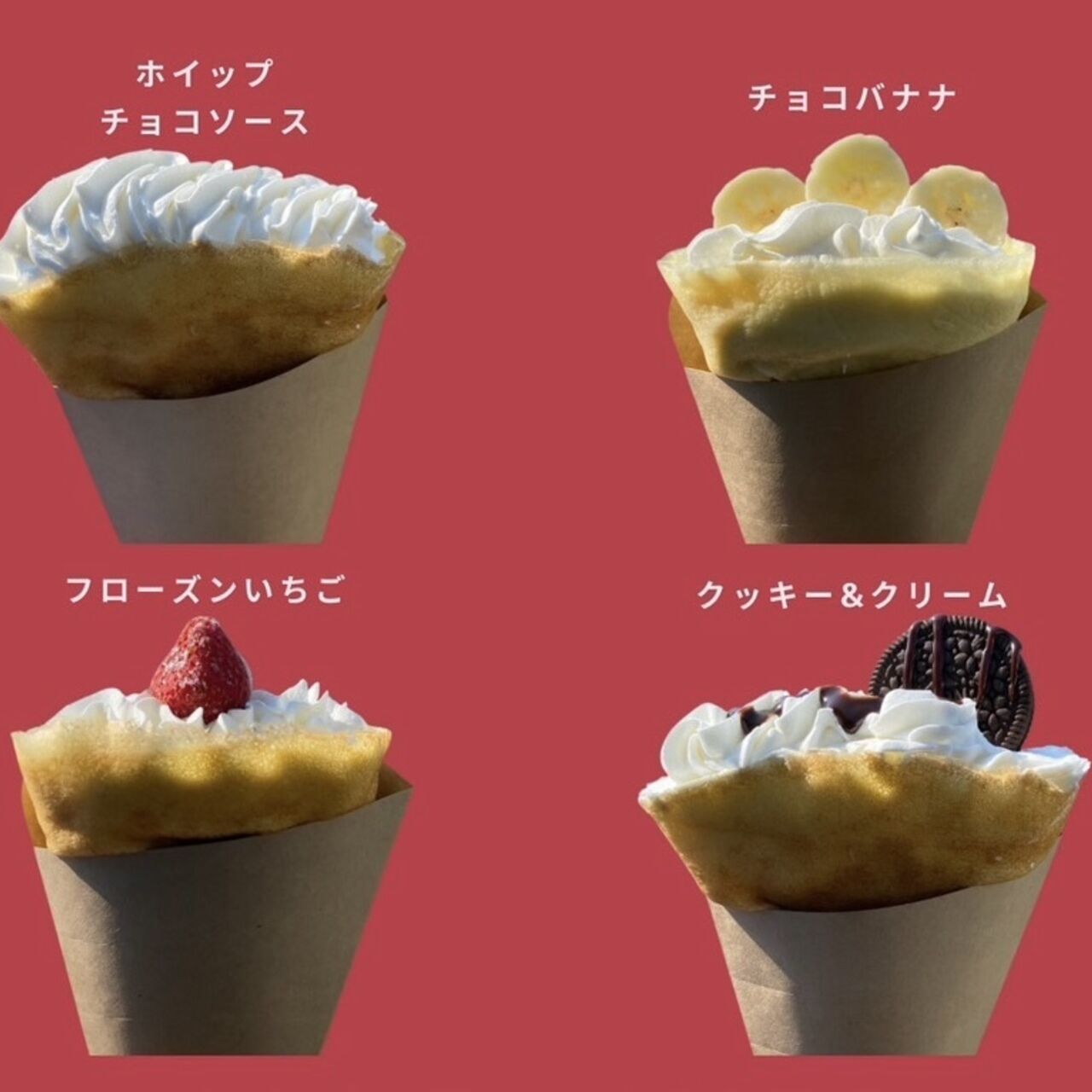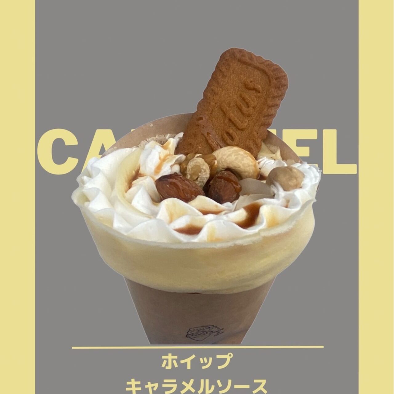 生クリーム大好きな人にはたまらない、ホイップのみ入ってるシンプルなクレープです。チョコソースかキャラメルソースお好きな方を選択いただけます。