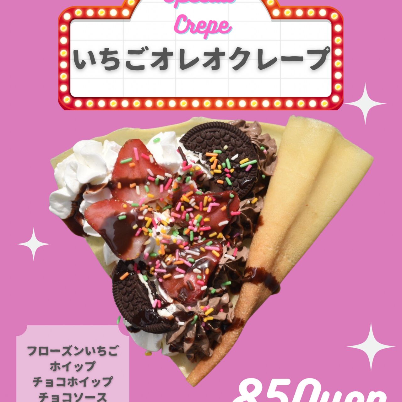 オレオのいちごとチョコホイップとみんなが大好きなカラースプレーが入ったクレープです
