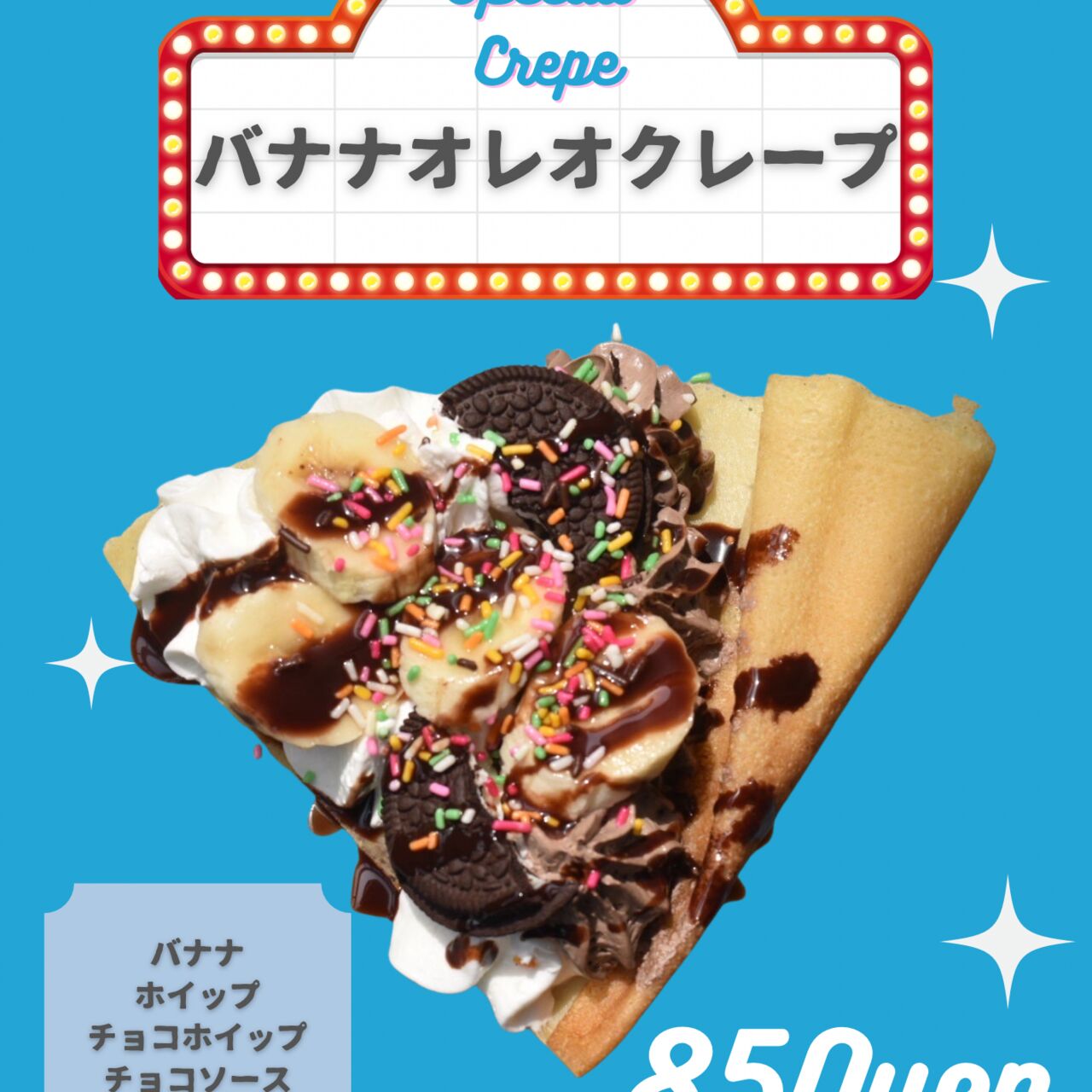 もちもち生地にホイップとオレオ、カラースプレー、バナナ、チョコホイップがふんだんに入ったクレープです