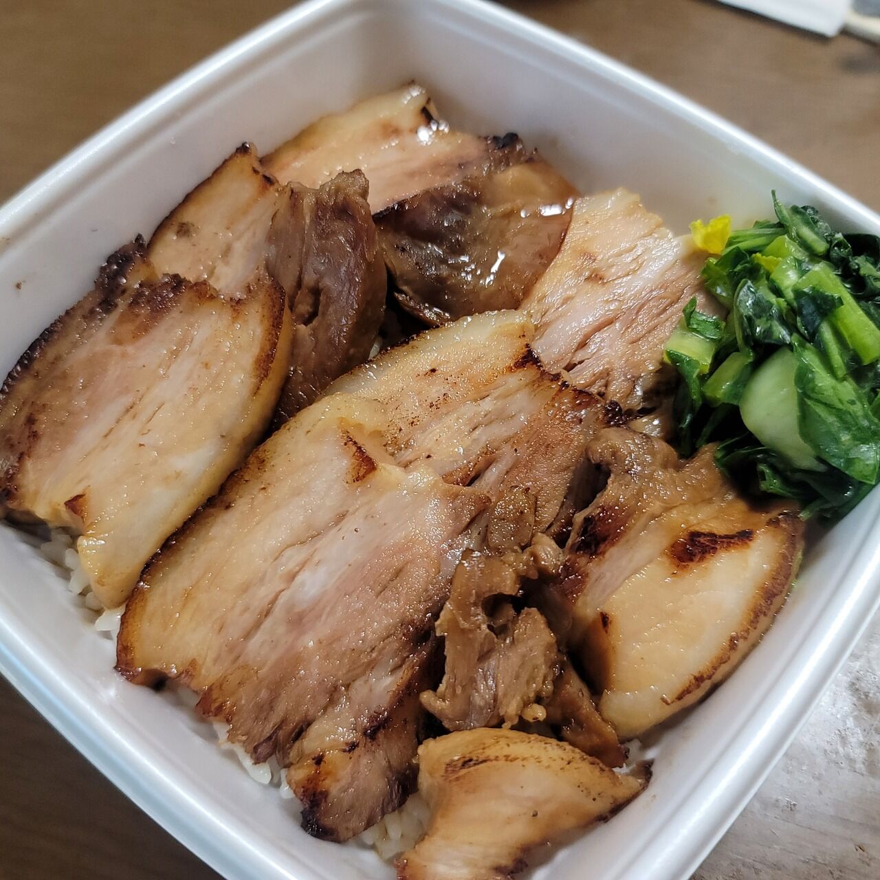 豚の三枚肉を長時間煮込んだチャーシューを甘辛ダレで。