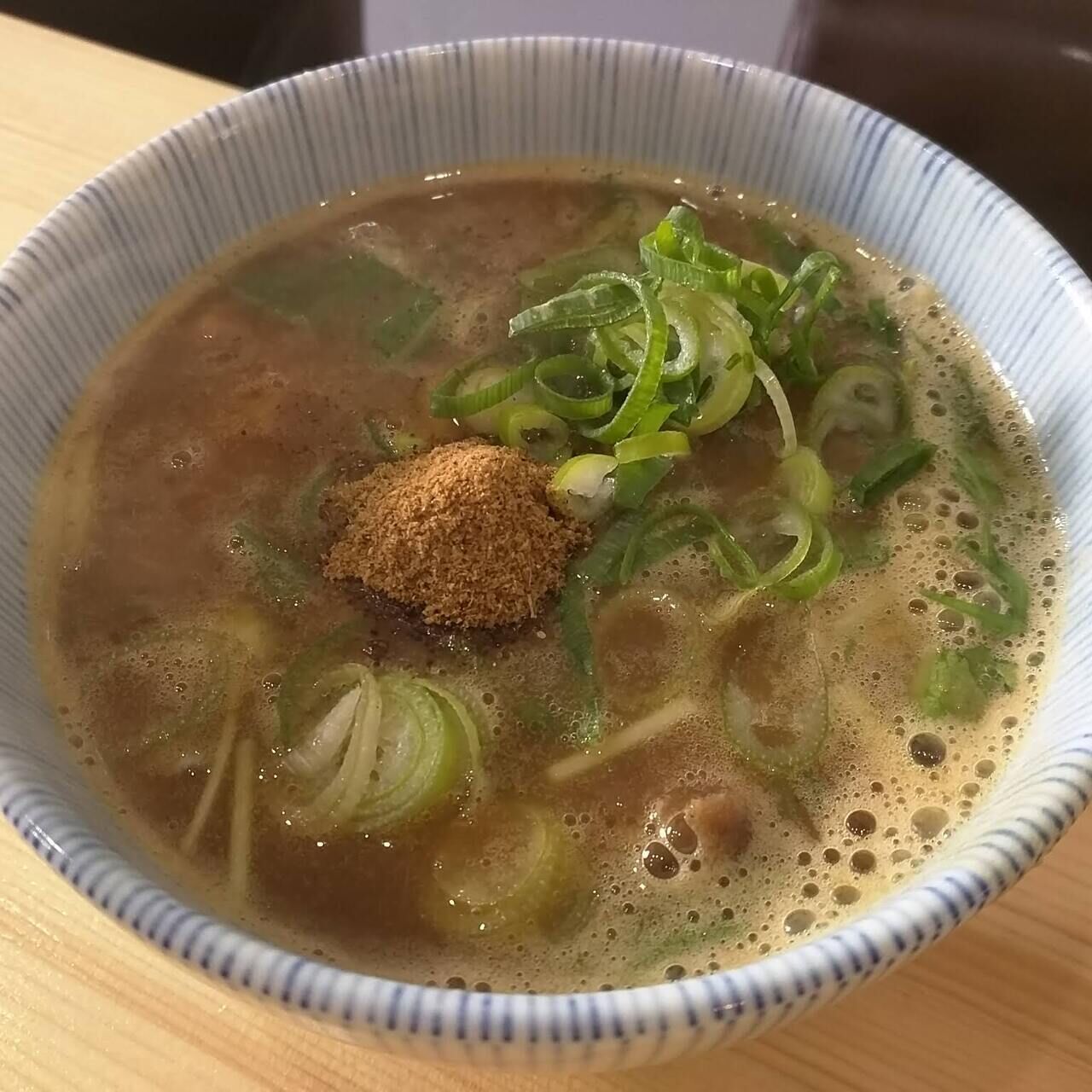 大量の鶏と削り節を長時間かけて仕上げた、どろどろスープに極太麺が絡む